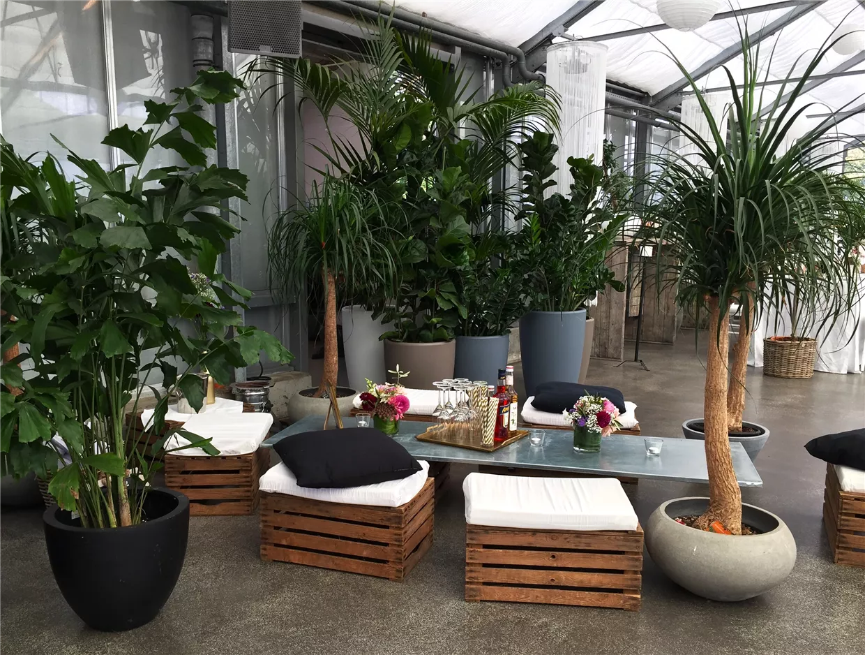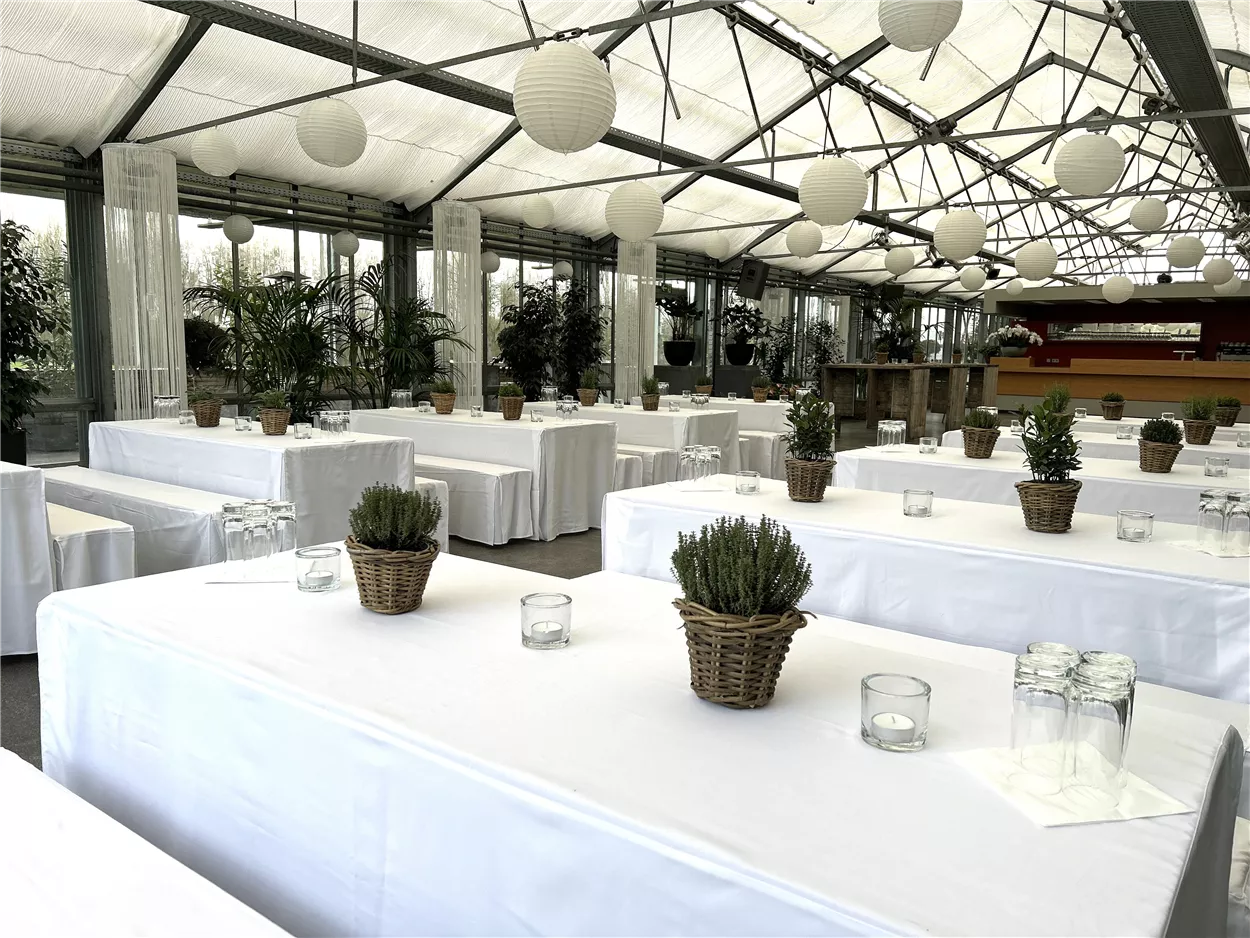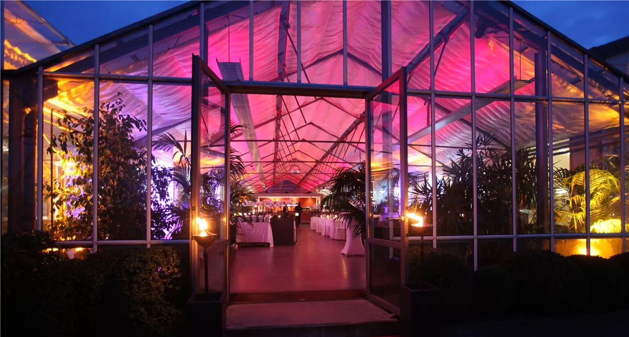 In dem direkt an unser Gartencenter angeschlossenen Gewächshaus mit moderner Fußbodenheizung, einem raffinierten Beleuchtungskonzept und einer integrierten Bar sorgen unsere Projektplanerin und ein stets gut gelauntes Team dafür, dass Ihr Event für Sie und Ihre Gäste zu einem außergewöhnlichen Erlebnis wird. Ein unverbauter Blick über die Rheinauen, ein großer Parkplatz vor der Tür und unsere freie Lage im Grünen ermöglichen ungestörtes Feiern mit viel Freiraum.