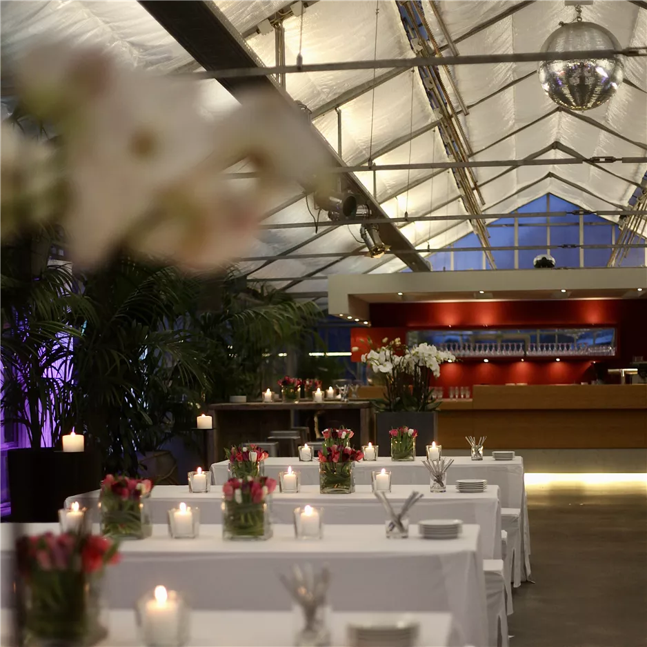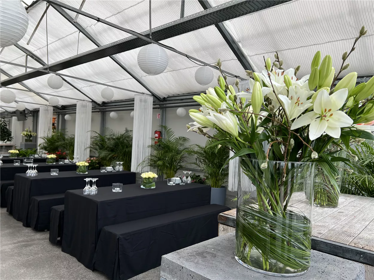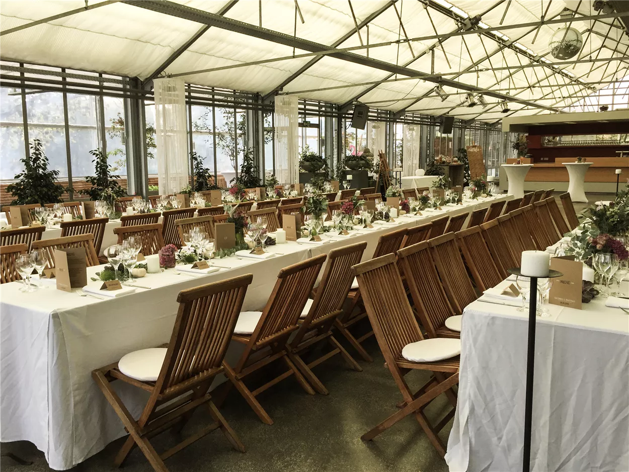 In dem direkt an unser Gartencenter angeschlossenen Gewächshaus mit moderner Fußbodenheizung, einem raffinierten Beleuchtungskonzept und einer integrierten Bar sorgen unsere Projektplanerin und ein stets gut gelauntes Team dafür, dass Ihr Event für Sie und Ihre Gäste zu einem außergewöhnlichen Erlebnis wird. Ein unverbauter Blick über die Rheinauen, ein großer Parkplatz vor der Tür und unsere freie Lage im Grünen ermöglichen ungestörtes Feiern mit viel Freiraum.