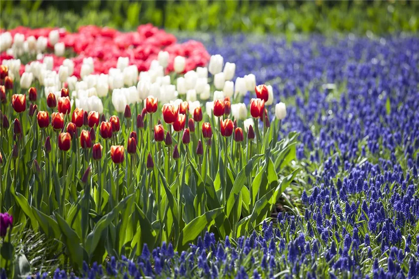 Bei im Frühling und im Sommer blühenden Blumenzwiebeln unterscheiden sich die Jahreszeiten, in denen sie gepflanzt werden. Frühblüher wie Tulpe, Narzisse und Co. werden im Herbst vor dem Eintreten des Frostes gepflanzt. Optimal ist die Zeit von September bis zum ersten Frost. Sommerblühende Blumenzwiebeln werden ab März in den Garten gesetzt. Gepflanzt werden können diese Blumenzwiebeln bis in den Frühsommer und sorgen noch im selben Jahr für bunte Farbkleckse im Beet. Blumenzwiebeln werden in einer Tiefe von etwa dem Dreifachen des Zwiebeldurchmessers gepflanzt. Sollte der Boden im Garten sehr schwer und lehmig sein, lohnt es sich, den Gartenboden mit Sand aufzulockern. Das verhindert, dass die Blumenzwiebeln anfangen zu faulen. Blumenzwiebeln können nahezu überall in den Garten gesetzt werden: ob im Beet, in Rabatten oder unter den Rasen – der Kreativität sind keine Grenzen gesetzt. Nur die im Sommer blühenden Blumenzwiebeln eigenen sich weniger für das Einpflanzen unter dem Rasen, weil sie im Herbst wieder aus der Erde geholt werden müssen.