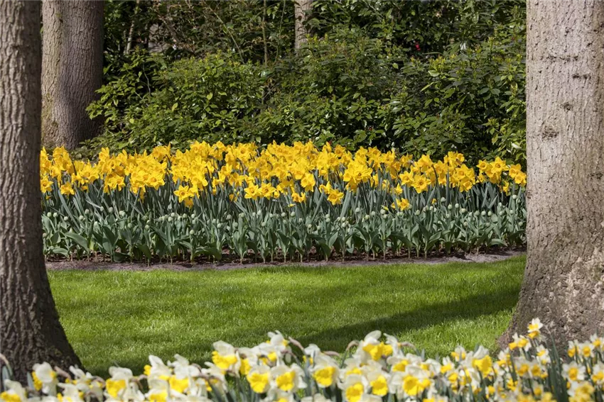 Ein schönes Blumenbeet mit Blumenzwiebeln