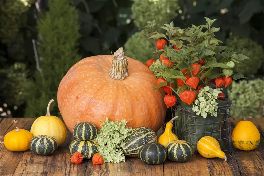 Wem die bunten Lampions nicht reichen, kann die Pflanze auch sehr gut in Pflanzenarrangements integrieren oder im Topf gepflanzt zur übrigen Herbstdekoration dazu stellen. Besonders gut passt die Lampionblume in einem Arrangement zur Moorheide. Die herbstlichen Farben der beiden Pflanzen ergänzen sich perfekt und erzeugen so eine ruhige Atmosphäre. Ein paar Zierkürbisse dazu und fertig ist die Herbstdekoration auf dem Gartentisch oder dem Balkon.
