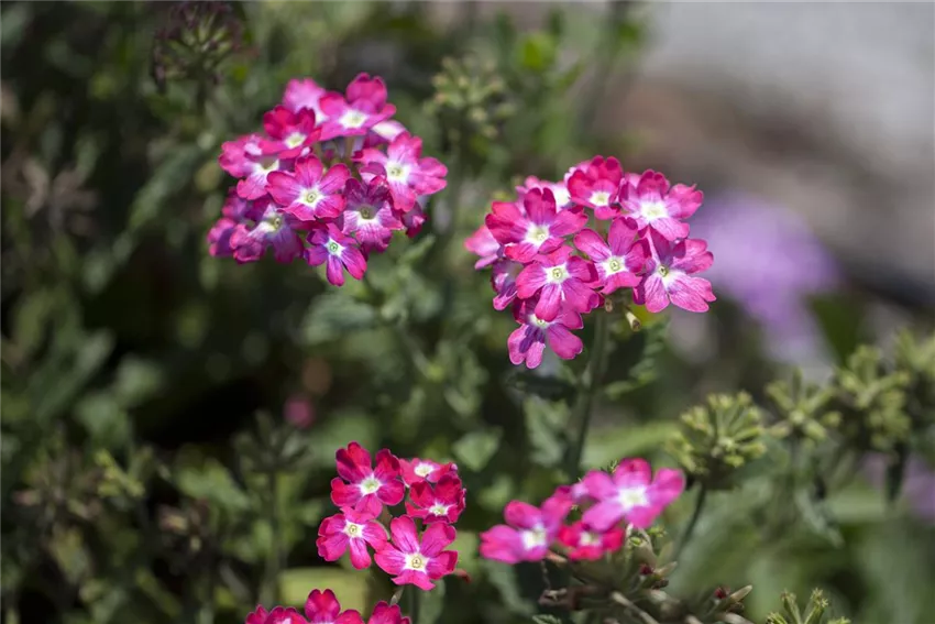 Die Verbene gehört zur Familie der Eisenkrautgewächse und ist in den eher sonnigen Gebieten der Welt beheimatet. Das Eisenkraut wächst im Süden Brasiliens, in Sudamerika und Argentinien. Die sonnenliebenden Pflanzen kommen aber mittlerweile auch gut mit den Wetterbedingungen in unseren heimischen Gärten zurecht. Verbenen sind nicht besonders anspruchsvoll und brauchen lediglich einen sonnigen und warmen Standort. Und selbst sommerliche Hitze hält die Pflanze sehr gut aus. Die neueren Züchtungen sind sogar resistent gegen Wind und Wetter.