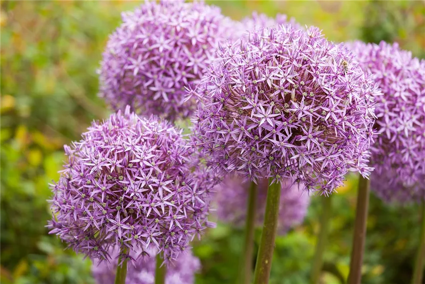 Auf die Blütenteppiche im Spätwinter folgen Frühlingsblüher wie Tulpen, Narzissen und Märzbecher. Auch sie erfreuen schon vor dem kalendarischen Frühling mit ihren bunten Blütenköpfen. Über einige Monate zieren sie den Garten mit ihrer Farb- und Formenvielfalt, bis sie sich zurückziehen und den Weg für die Sommerblüte freimachen. Gepflanzt werden Frühlingsblüher im Herbst. Zwischen Frühjahr und Sommer gedeiht der prächtige Verwandte von Speisezwiebel und Schnittlauch. Zierlauch überzeugt mit teils riesigen Blütenbällen, an denen man einfach nicht vorbeischauen kann. Mit diesem dominanten Auftreten ist er ein absoluter Blickfang in jedem Staudenbeet. Kombiniert mit Prachtkerzen, Salbei oder Veronica ergibt sich ein herrliches Bild im Sommer. Aber der Sommer hat noch viel mehr Farbe zu bieten.