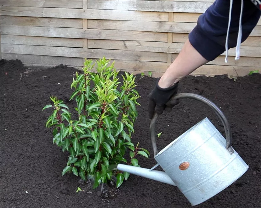 Je nach Wetter müssen Sie den Portugiesische Kirschlorbeer besonders in den ersten Wochen nach der Pflanzung sowie im Hochsommer nach Bedarf gießen. Auf anhaltende Trockenheit reagieren diese Pflanzen übrigens auch im Winter sehr empfindlich: Auch in der dunklen Jahreszeit sollte die Erde nicht über längere Zeit austrocknen!