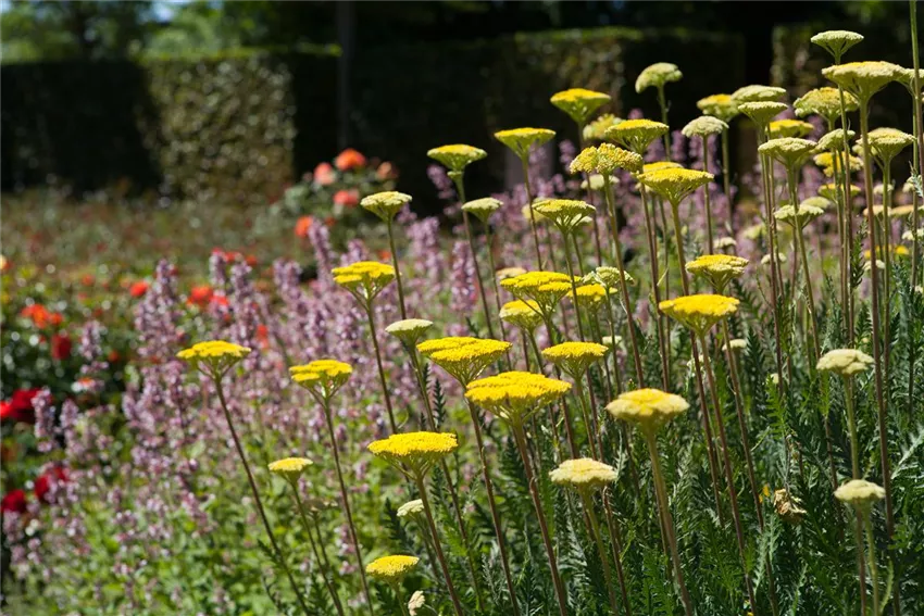 In weiß erstrahlen der Gartenjasmin, die Prachtspiere, aber auch manche Strauchrosen und natürlich Margeriten. Aber natürlich können Sie sich Ihre Stauden in allen erdenklichen Farben aussuchen.