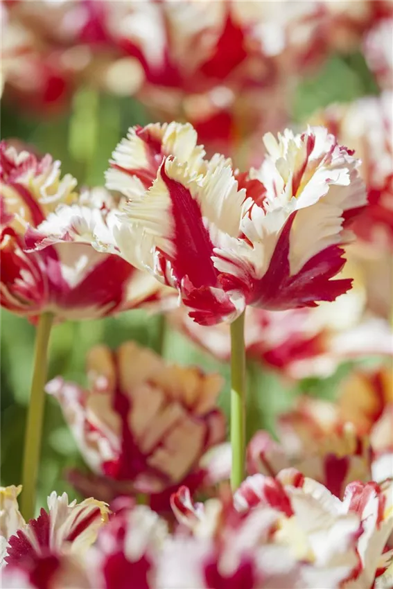 Eine so beliebte Pflanze wie die Tulpe lädt natürlich dazu ein, mit ihren Farben und Formen zu spielen. Es gibt viele Züchtungen, die sich sehen lassen können. Unvergleichlich ist zum Beispiel die Papageien-Tulpe mit ihren federartigen, zerfaserten Rändern. Die Sorte „Flaming Parrot“ präsentiert flammende Blütenblätter, die in zwei Farben gestreift sind. Sie erinnern an Federn eines Papageis. Wenn Sie ein Liebhaber ungewöhnlicher Farbkombinationen sind, greifen Sie am besten zu Rembrandt-Tulpen. Deren Ursprung ist ungewöhnlich: ihr Flor war die Folge einer Viruserkrankung. Züchtungen der Rembrandt-Tulpen, die man heute im Handel erhält, sind natürlich gesund. Sie sind ein Blickfang in jedem Gartenarrangement für den Frühling.