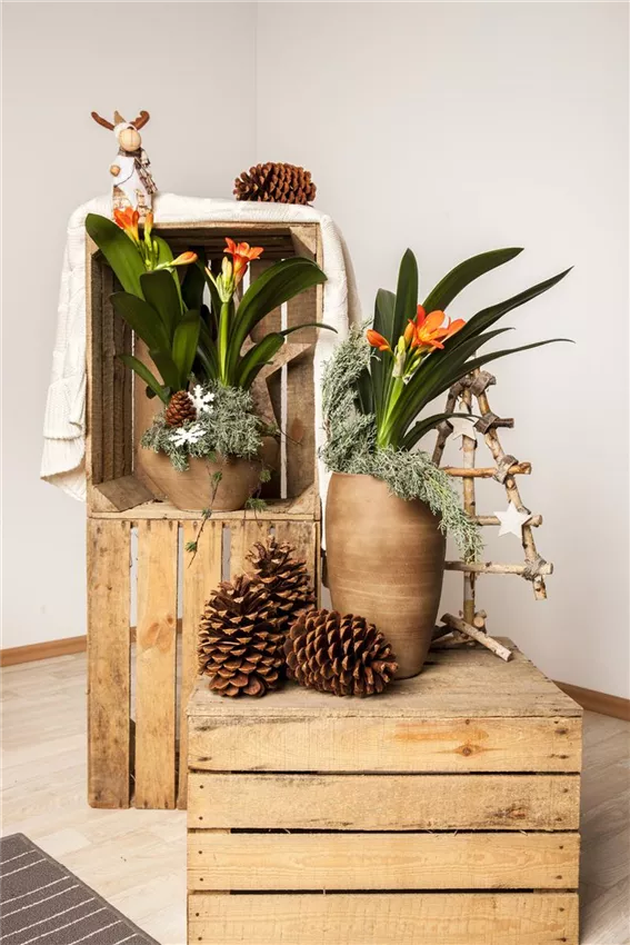 Entgegen sich hartnäckig haltender Gerüchte, dürfen auch im Schlafzimmer Pflanzen stehen. Es ist sogar ein idealer Standort für all jene Pflanzen, die es kühler mögen und auch eine höhere Luftfeuchtigkeit zu schätzen wissen. Dazu gehört zum Beispiel die farbenprächtige Clivia. Auf der Kommode wird sie schnell zum exotischen Blickfang. Zudem erweist sie sich als pflegeleichte Zimmerpflanze.