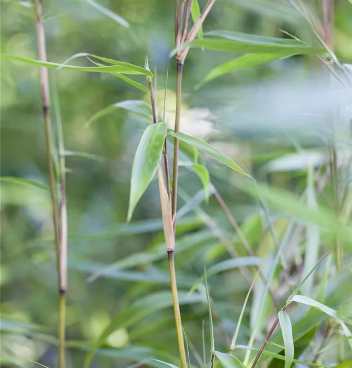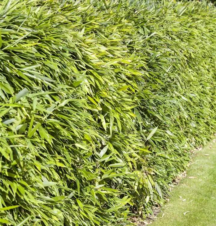 Der Muriel Schirmbambus (Fargesia murielae) ist mit seiner dunkelgrünen Blattfärbung ein dekoratives Gestaltungselement im Garten. Das Besondere an ihm ist, nebst der aufrechten Form, dass er keine Rhizomsperre braucht! Bevorzugt werden sonnige bis halbschattige Standorte mit einem durchlässigen und schwachsauren Boden. Bei günstigen Bedingungen erreicht dieser winterharte Bambus eine Höhe von ca. 2,5 m und wird bis zu 2,5 m breit.