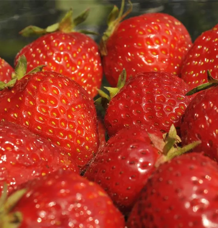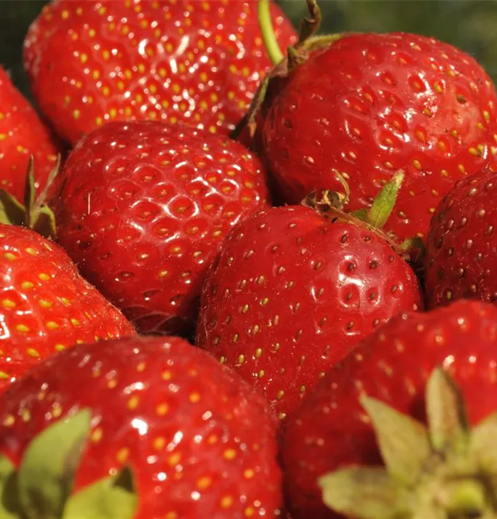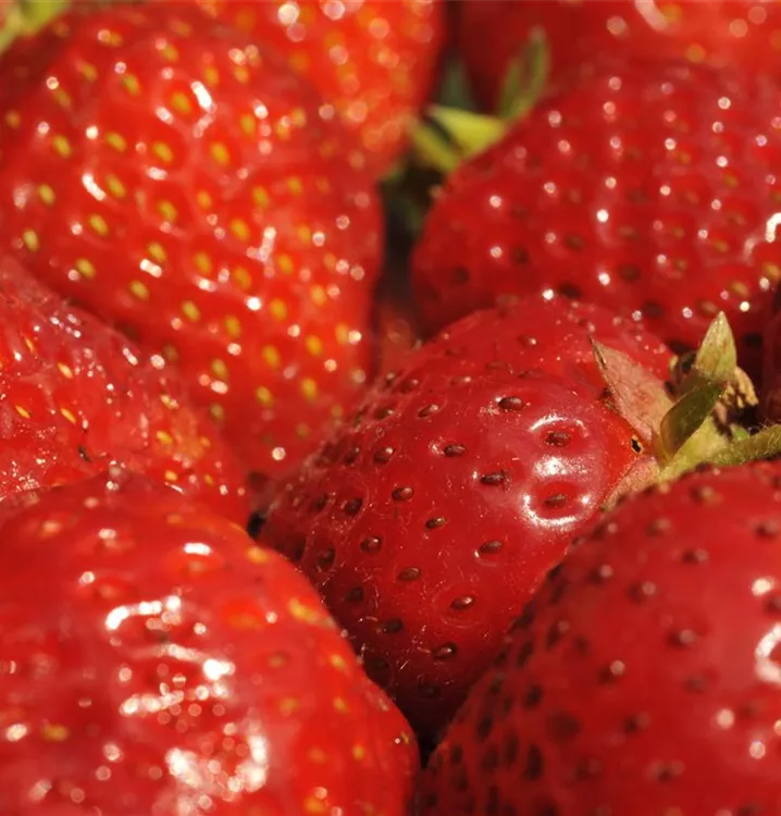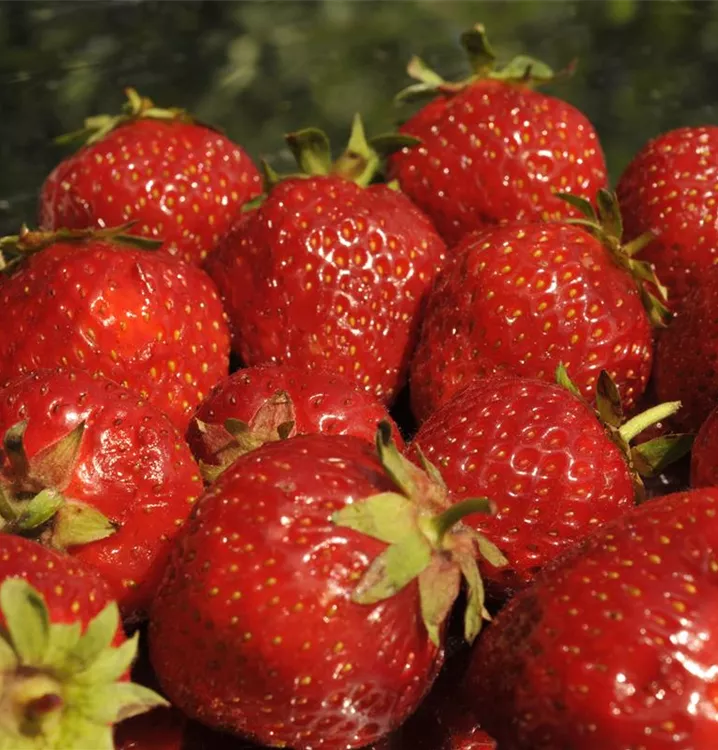 Die Erdbeere 'Senga®-Sengana®' (Fragaria x ananassa) bildet rote, sehr große Beeren. Diese sind fest und süß, aromatisch im Geschmack. Für eine ertragreiche Ernte ab Juni schaffen durchlässiger, humoser, schwachsaurer Boden und ein sonniger Standort optimale Bedingungen. Auch ihre weißen Blüten sind eine schöne Erscheinung.