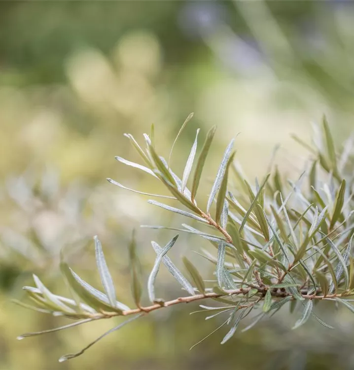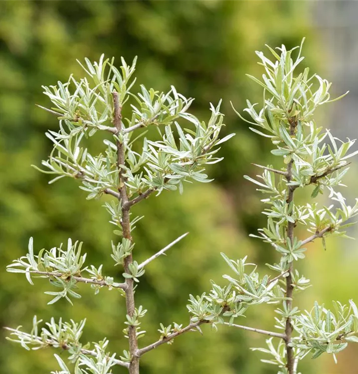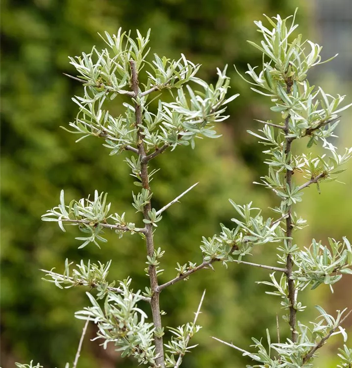 Die Triebe von Hippophae rhamnoides sind bedornt.