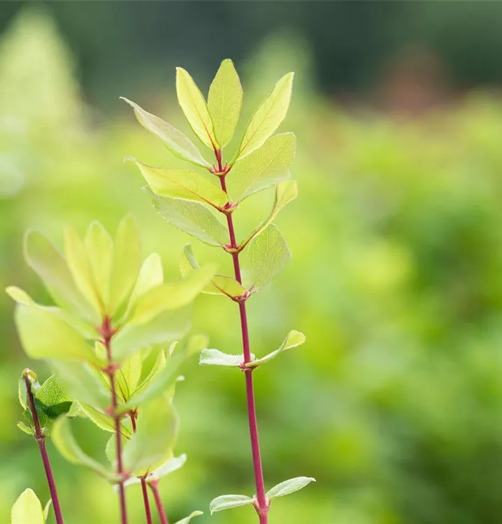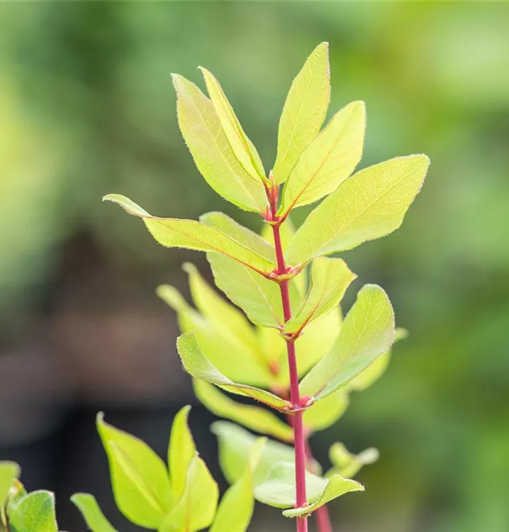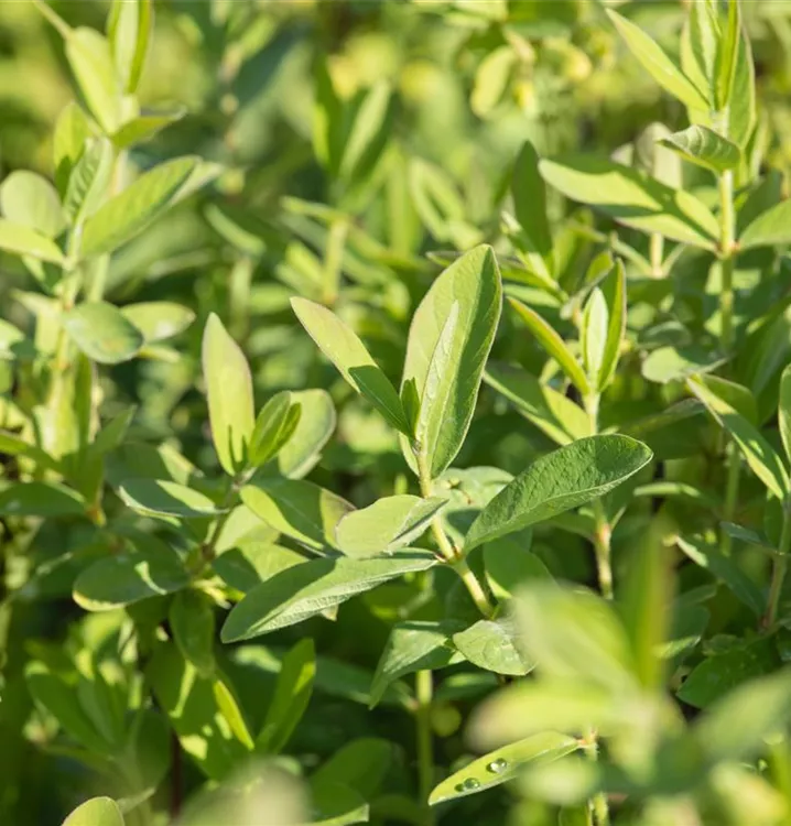 Die sommergrünen Blätter der Blaue Heckenkirsche sind grau-grün, lanzettlich.