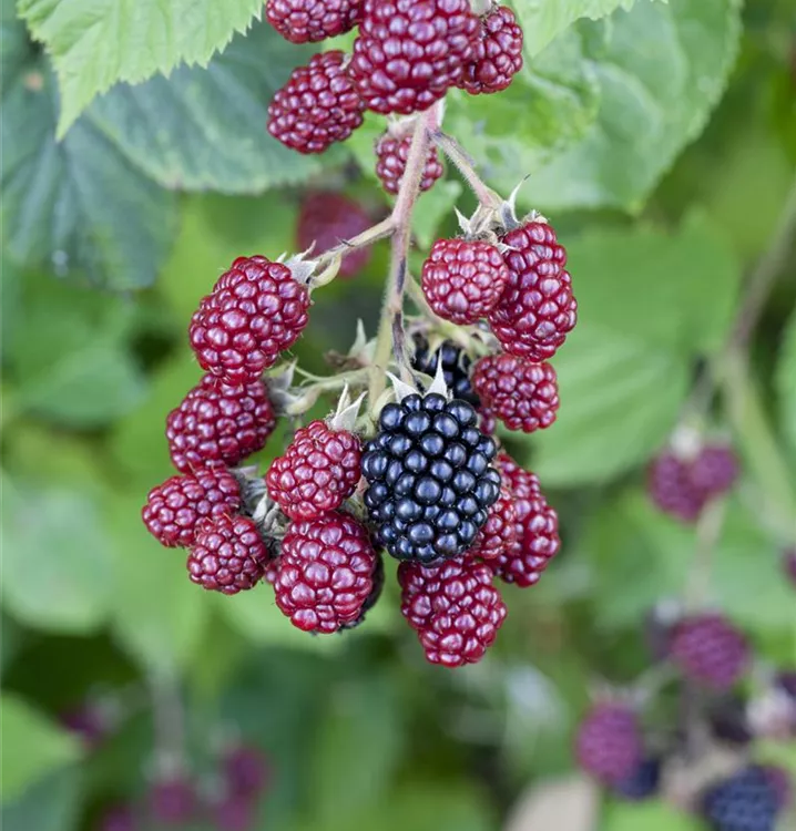 Die Brombeere (Rubus fruticosus) bildet schwarze Beeren. Diese sind aromatisch, fruchtig im Geschmack. Für eine ertragreiche Ernte ab August schaffen durchlässiger, humoser, nährstoffreicher Boden und ein sonniger bis schattiger Standort optimale Bedingungen. Auch ihre weißen Blüten sind eine schöne Erscheinung.