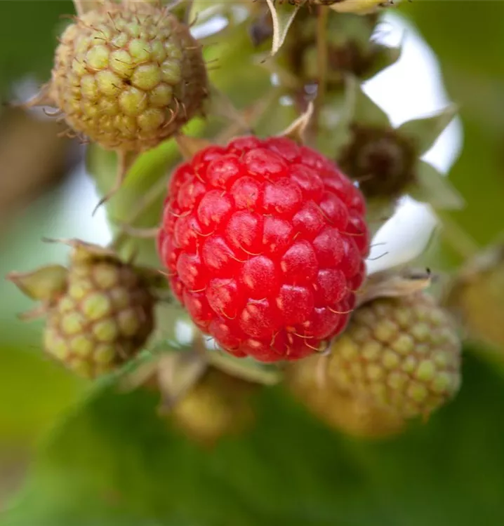 Die Gemeine Himbeere (Rubus idaeus) bildet rote Beeren. Diese sind aromatisch, süß im Geschmack. Für eine ertragreiche Ernte ab August schaffen durchlässiger, nährstoffreicher Boden und ein sonniger bis halbschattiger Standort optimale Bedingungen. Auch ihre weißen Blüten sind eine schöne Erscheinung.