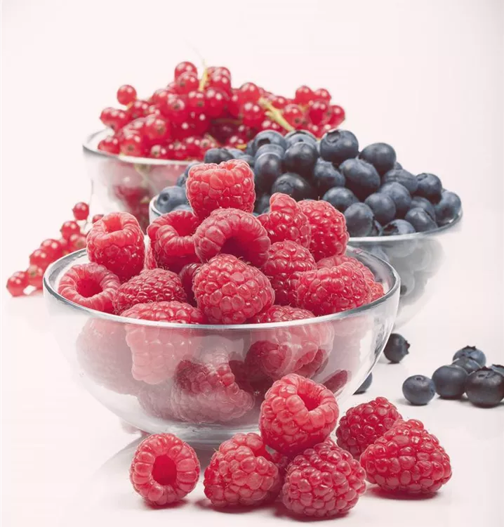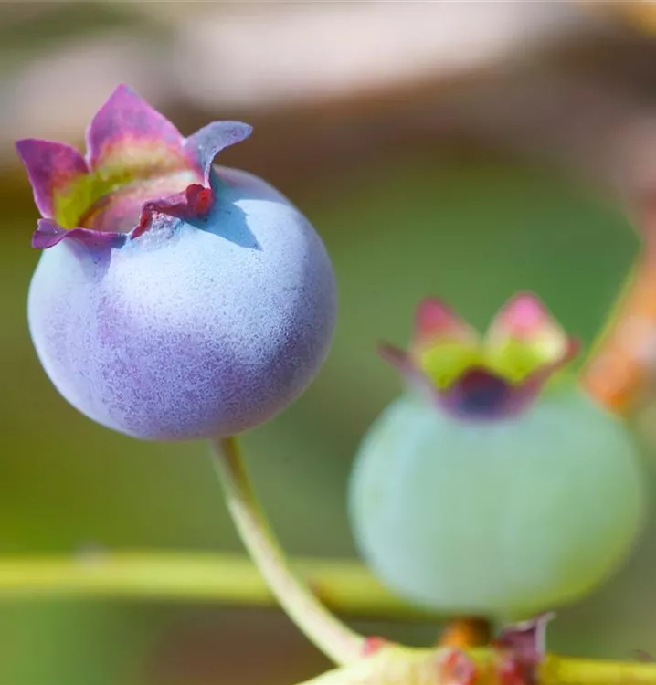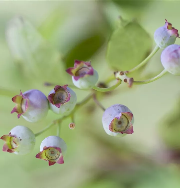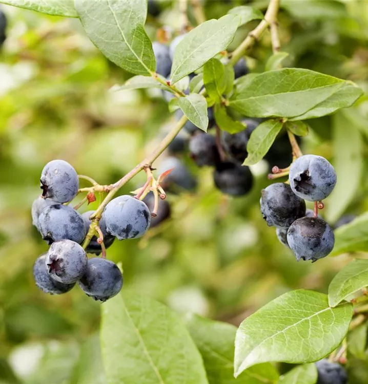 Die Amerikanische Heidelbeere (Vaccinium corymbosum) bildet blaue Beeren. Diese sind süß-säuerlich im Geschmack. Für eine ertragreiche Ernte ab Juli schaffen humoser, sandiger, feuchter bis nasser, schwachsaurer Boden und ein sonniger bis halbschattiger Standort optimale Bedingungen. Auch ihre hellrosafarbenen Blüten sind eine schöne Erscheinung.