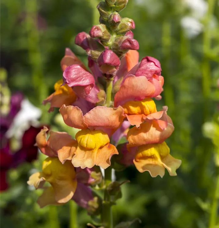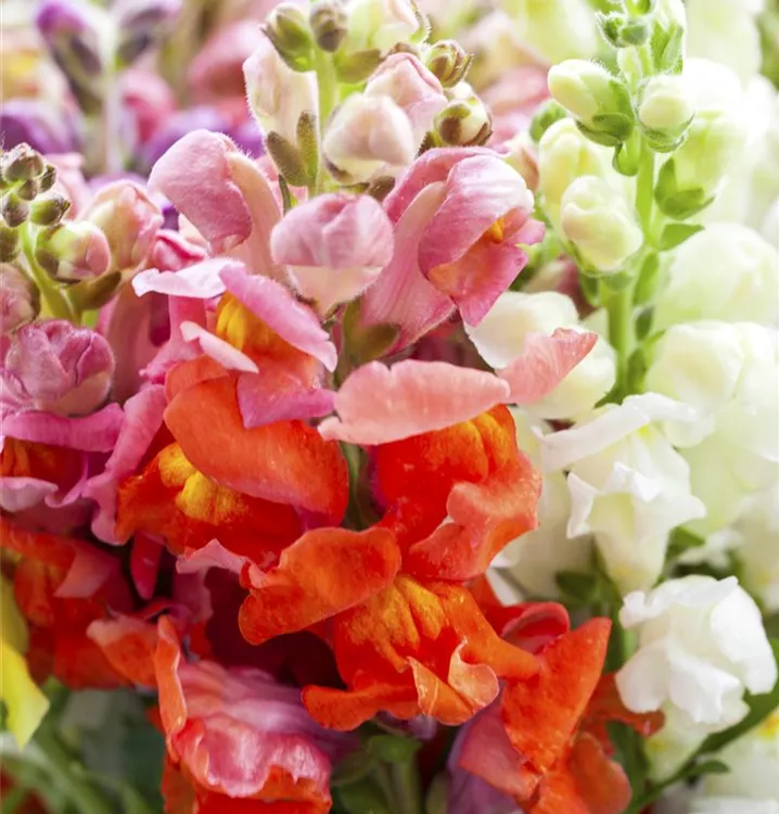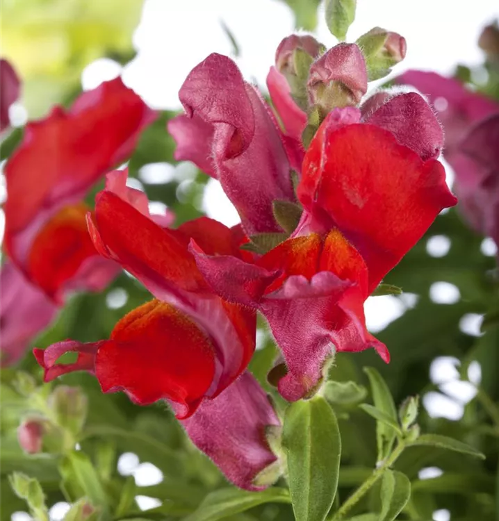 Das Garten-Löwenmaul (Antirrhinum majus) ist eine beliebte, pflegeleichte Pflanze für den Balkon, die während der gesamten Saison unzählige gelbe, rote oder weiße Blüten bildet. Die dunkelgrünen Blätter sind lanzettlich. Ein sonniger bis halbschattiger Standort und ein durchlässiges Substrat werden bevorzugt.