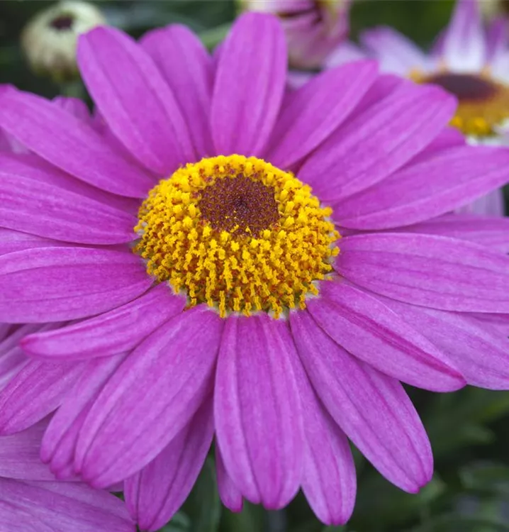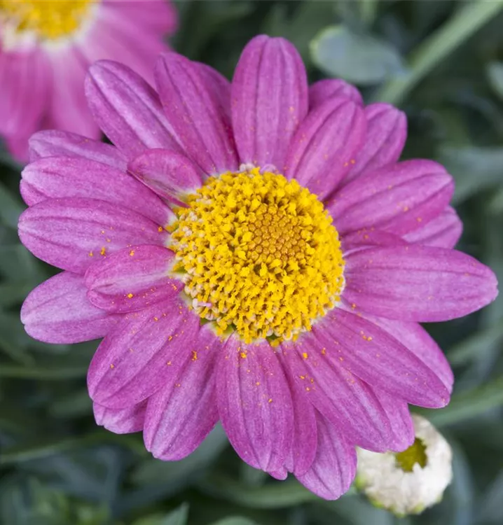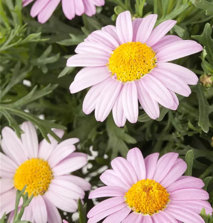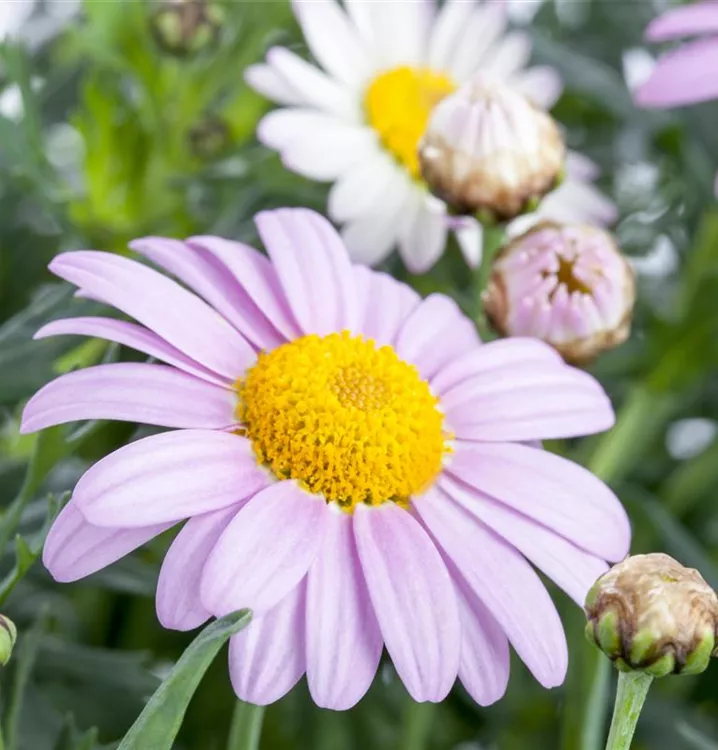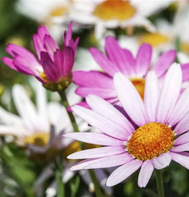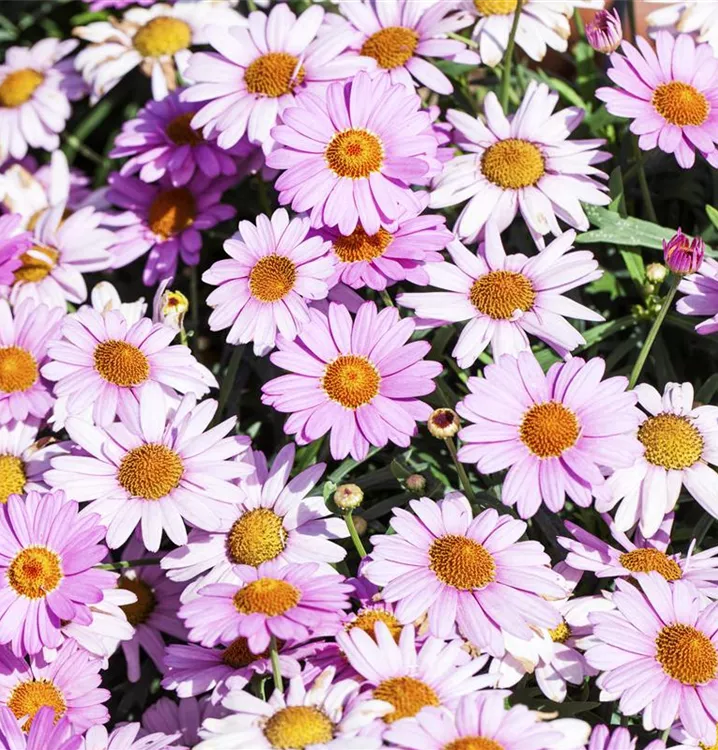 Die Strauchmargerite (Argyranthemum frutescens) ist eine beliebte Pflanze für den Balkon, die während der gesamten Saison unzählige rosafarbene Blüten bildet. Ein sonniger Standort und ein durchlässiges Substrat werden bevorzugt.