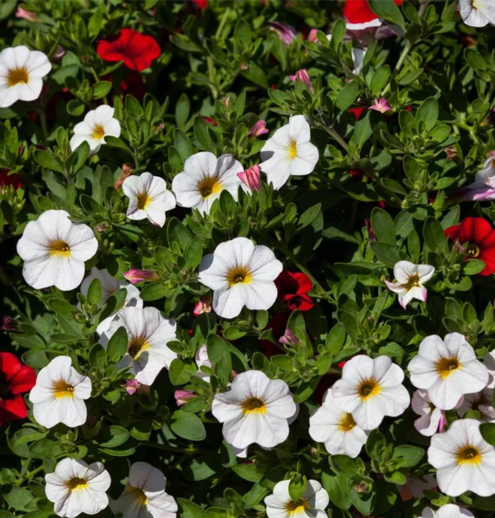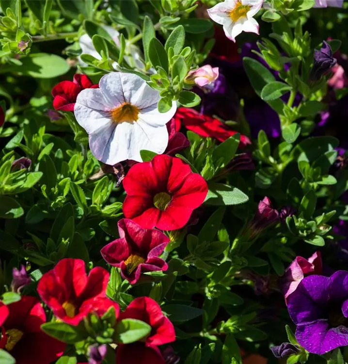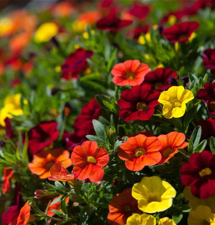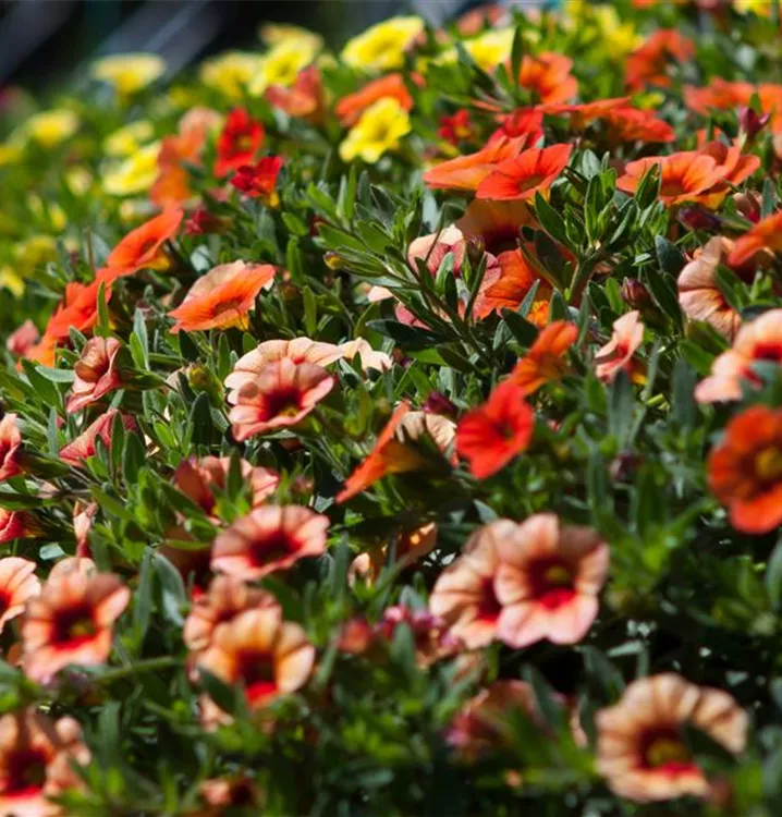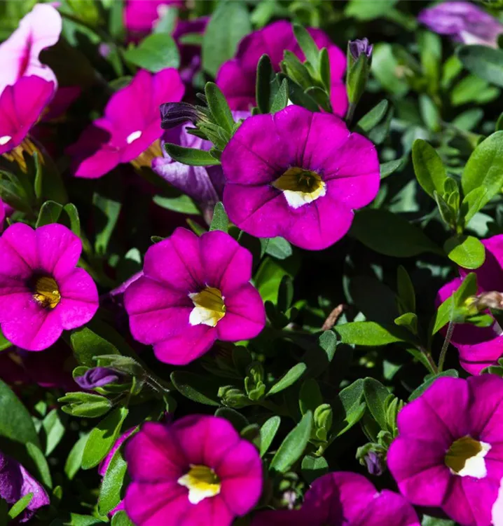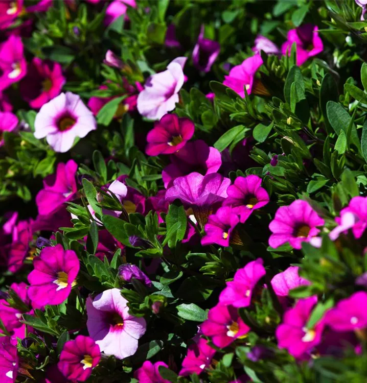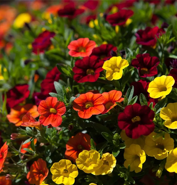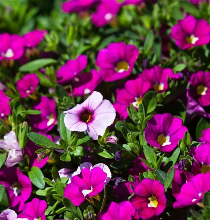 Das Zauberglöckchen (Calibrachoa) ist eine beliebte, pflegeleichte Pflanze für den Balkon, die während der gesamten Saison unzählige bunte Blüten bildet. Ein sonniger bis halbschattiger Standort und ein durchlässiges Substrat werden bevorzugt. Mit seinem buschigen und überhängenden Wuchs passt das Zauberglöckchen besonders gut in Blumenampeln und hängende Pflanzkörbe.