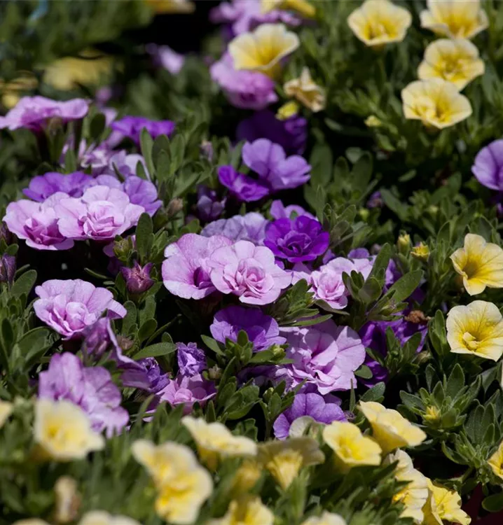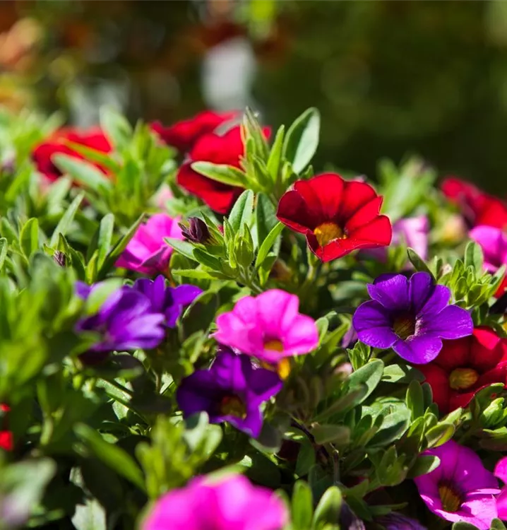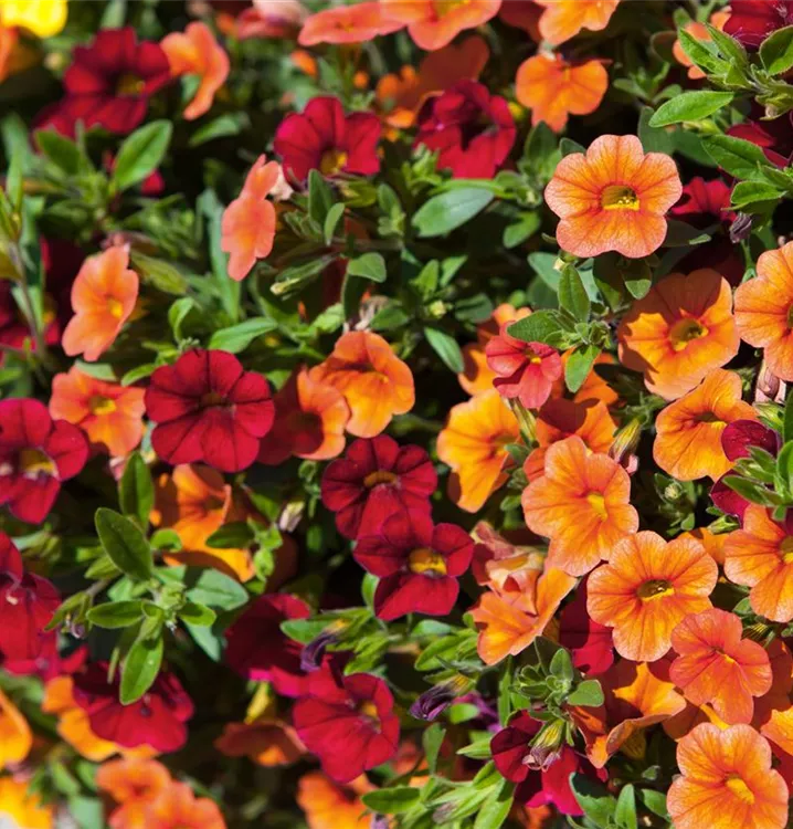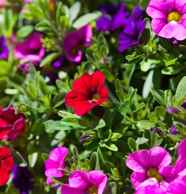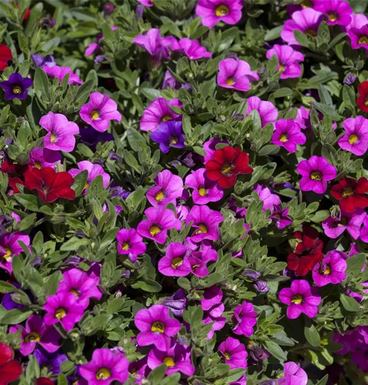 Calibrachoa 'Trixi'® bildet während der gesamten Saison zahlreiche trichterförmige, bunte Blüten.
