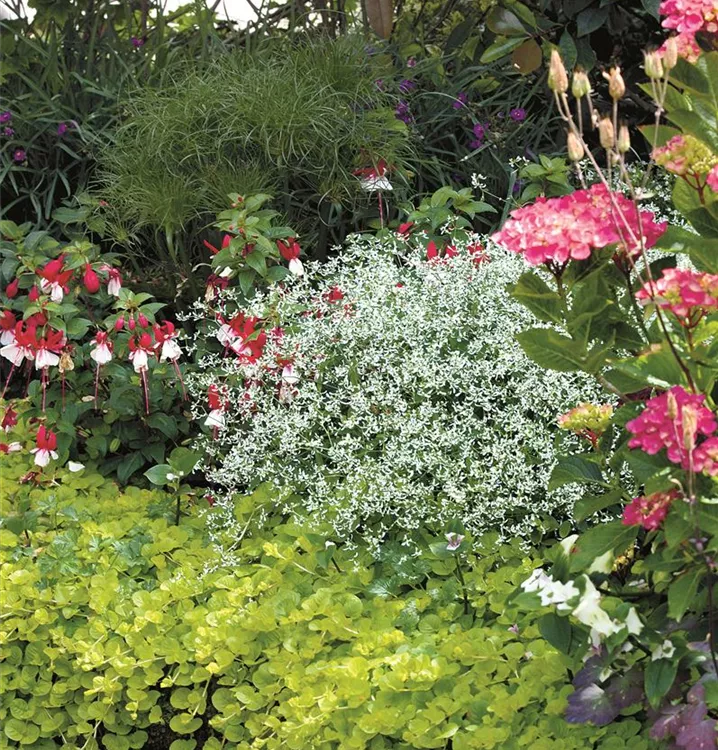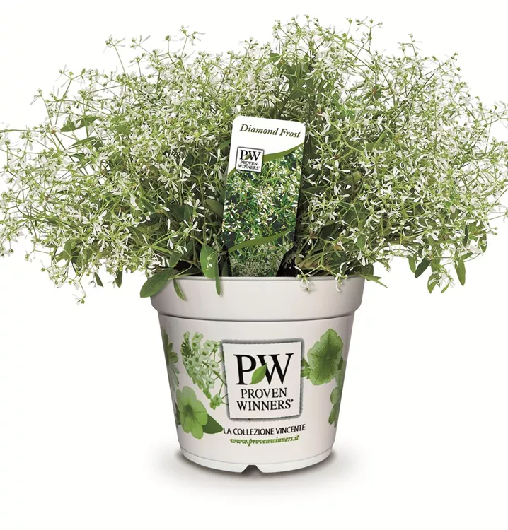 Euphorbia hypericifolia 'Diamond Frost'(s) bildet während der gesamten Saison zahlreiche weiße Blüten.
