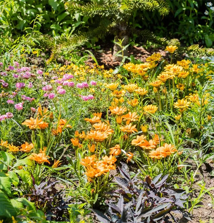 Die Halbstrauch-Gazanie (Gazania rigens) ist eine beliebte Pflanze für den Balkon. Die unzähligen Blüten erscheinen, je nach Sorte, in verschiedenen Farben die ganze Saison hindurch. Ein sonniger Standort und ein durchlässiges Substrat werden bevorzugt.