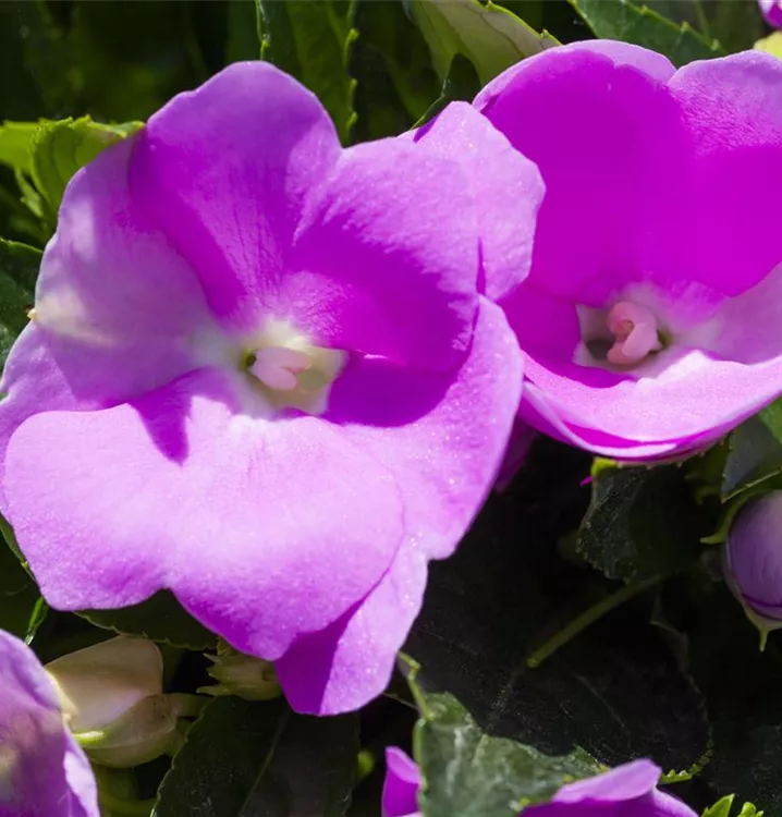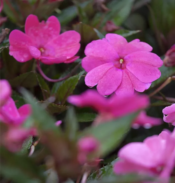 Das Edellieschen (Impatiens neuguinea) ist eine beliebte Pflanze für den Balkon, die während der gesamten Saison unzählige weiße, rosafarbene oder rote Blüten bildet. Ein sonniger bis schattiger Standort und ein durchlässiges Substrat werden bevorzugt.