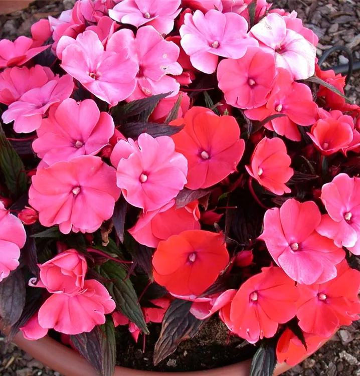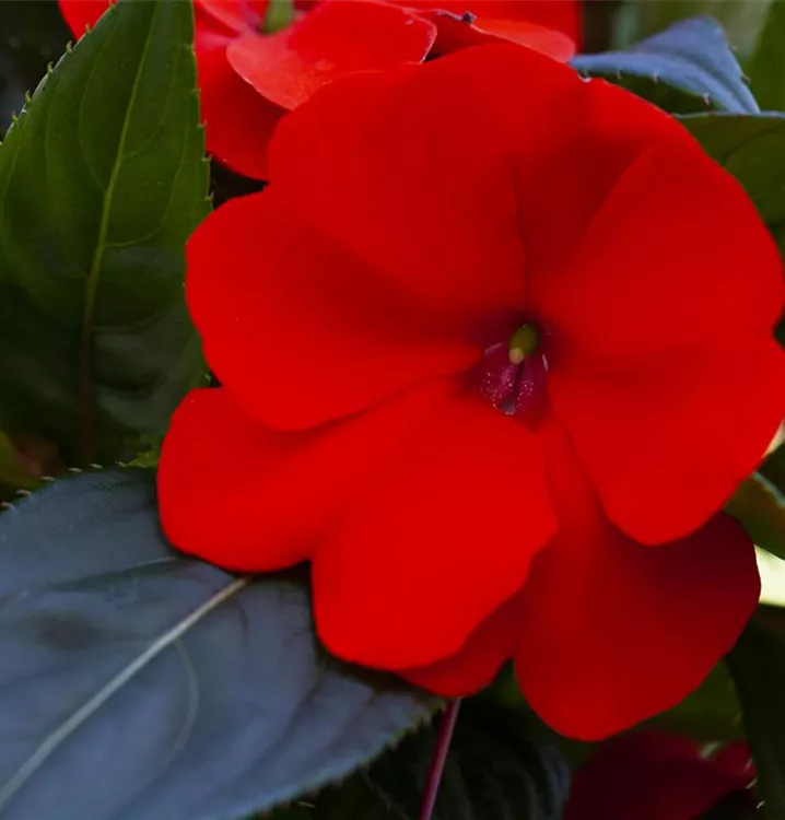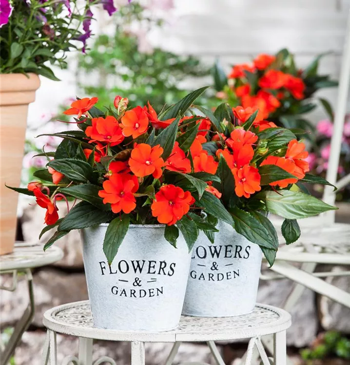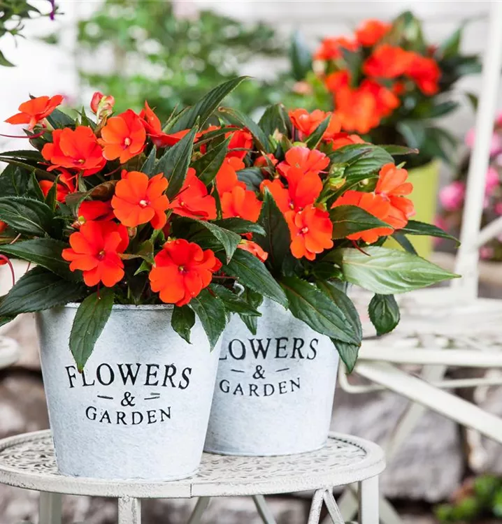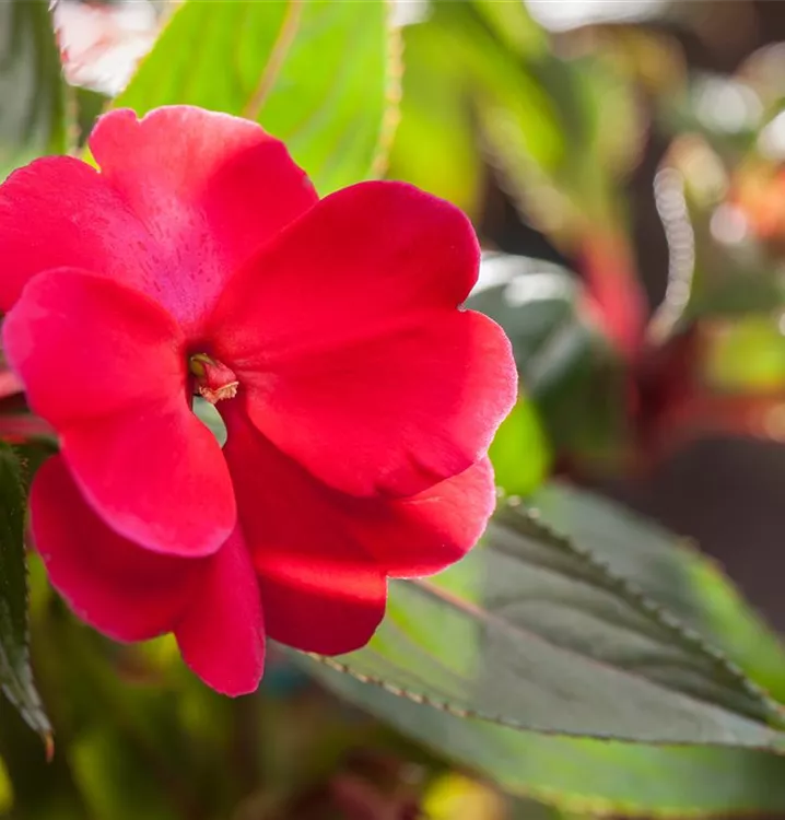 Das Sonnenlieschen (Impatiens neuguinea) ist eine beliebte Pflanze für den Balkon, die während der gesamten Saison unzählige rote Blüten bildet. Die dunkelgrünen Blätter sind eiförmig. Ein sonniger bis schattiger Standort und ein durchlässiges Substrat werden bevorzugt.