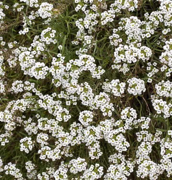 Das Strand-Silberkraut (Lobularia maritima) ist eine beliebte Pflanze für den Balkon, die während der gesamten Saison unzählige weiße, angenehm duftende Blüten bildet. Ein sonniger bis halbschattiger Standort und ein durchlässiges Substrat werden bevorzugt. Mit seinem dichten Wuchs passt das Strand-Silberkraut besonders gut in Blumenampeln und hängende Pflanzkörbe.