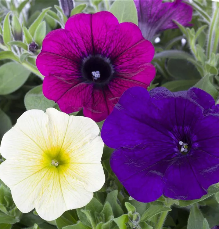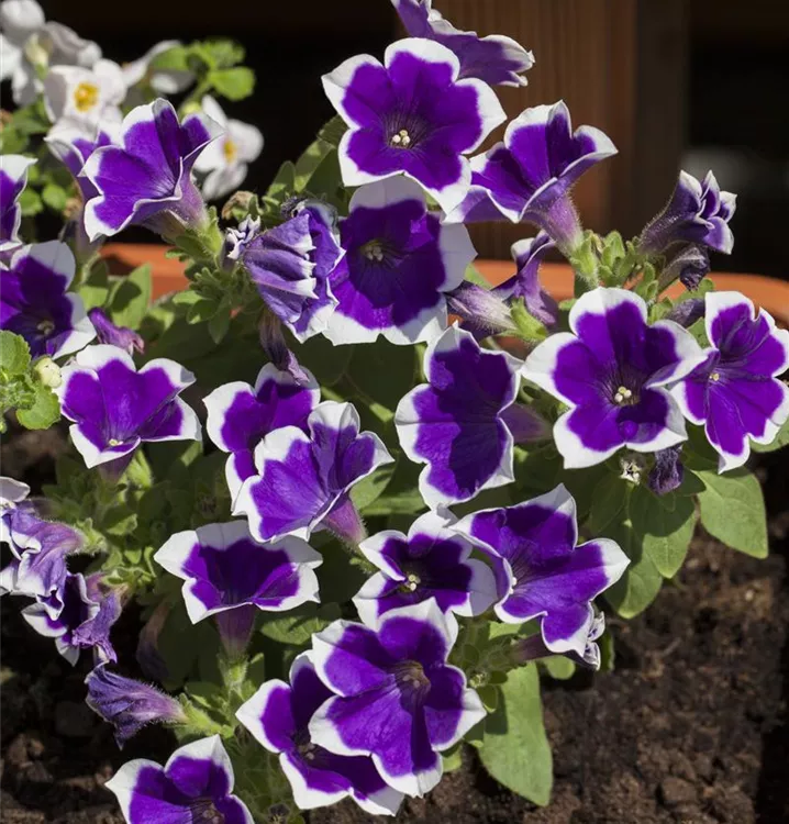 Die Petunie (Petunia) ist eine beliebte Pflanze für den Balkon. Die unzähligen Blüten erscheinen, je nach Sorte, in verschiedenen Farben die ganze Saison hindurch. Ein sonniger Standort und ein durchlässiges Substrat werden bevorzugt.