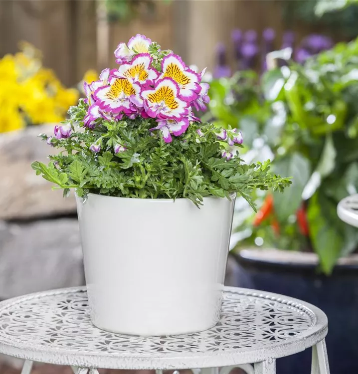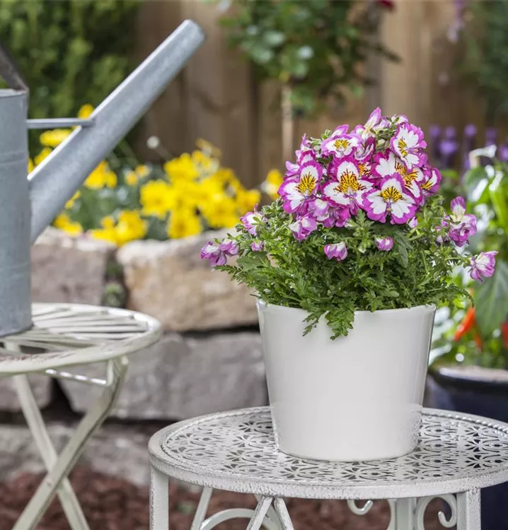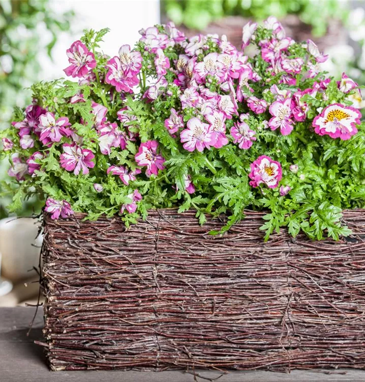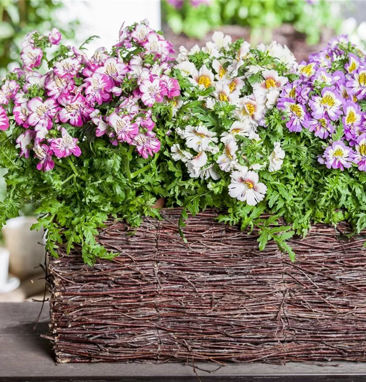 Die Bauernorchidee (Schizanthus wisetonensis) ist eine beliebte Pflanze für den Balkon. Die unzähligen Blüten erscheinen, je nach Sorte, in verschiedenen Farben die ganze Saison hindurch. Ein sonniger bis halbschattiger Standort und ein durchlässiges Substrat werden bevorzugt.