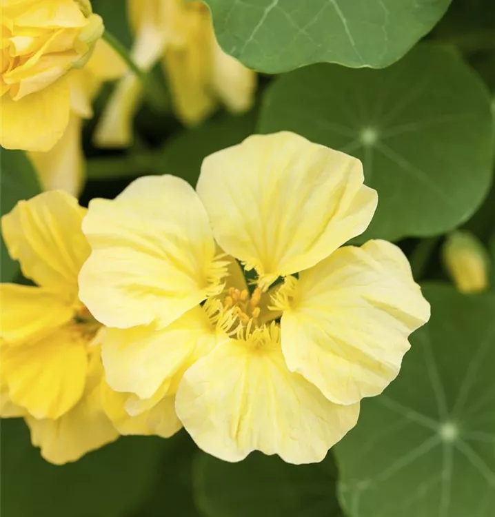 Die Große Kapuzinerkresse (Tropaeolum majus) ist eine beliebte Pflanze für den Balkon. Die unzähligen Blüten erscheinen, je nach Sorte, in verschiedenen Farben die ganze Saison hindurch. Ein sonniger bis halbschattiger Standort und ein durchlässiges Substrat werden bevorzugt.