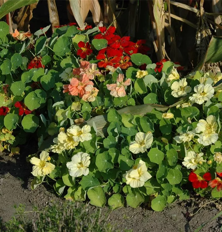 Zum Verzehr geeignet. Je nach Sorte, bildet Tropaeolum majus Blüten in verschiedenen Farben.