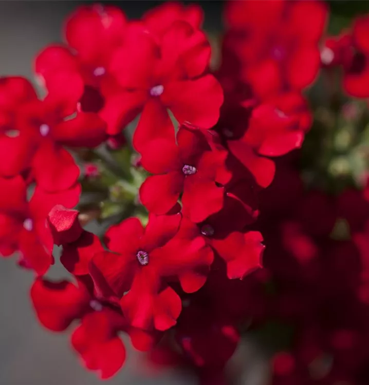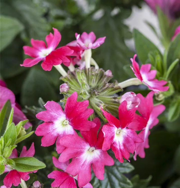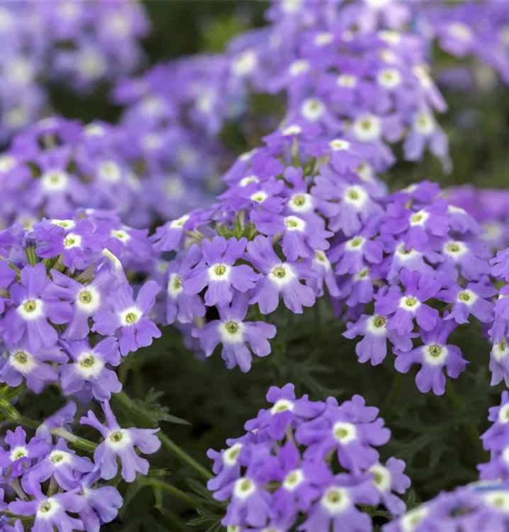Die Verbena-Hybride (Verbena) ist eine beliebte Pflanze für den Balkon. Die unzähligen Blüten erscheinen, je nach Sorte, in verschiedenen Farben die ganze Saison hindurch. Ein sonniger Standort und ein durchlässiges Substrat werden bevorzugt.