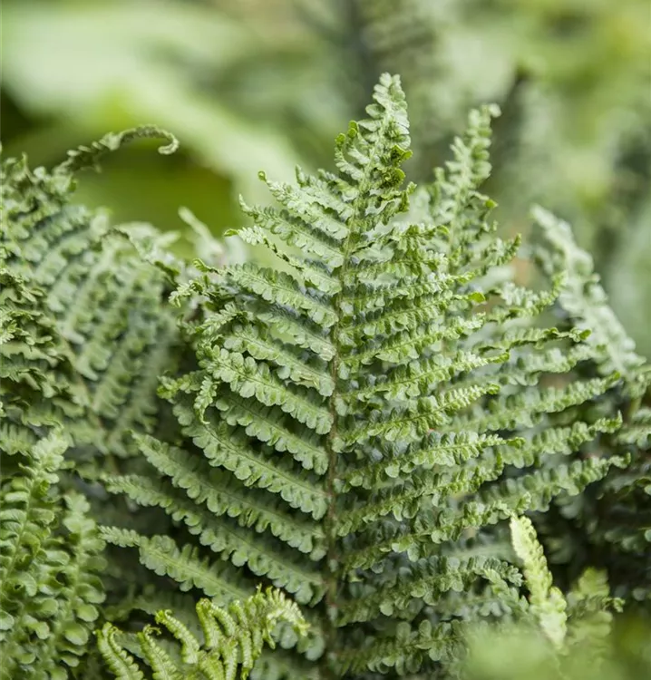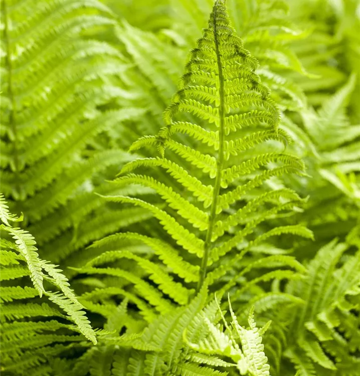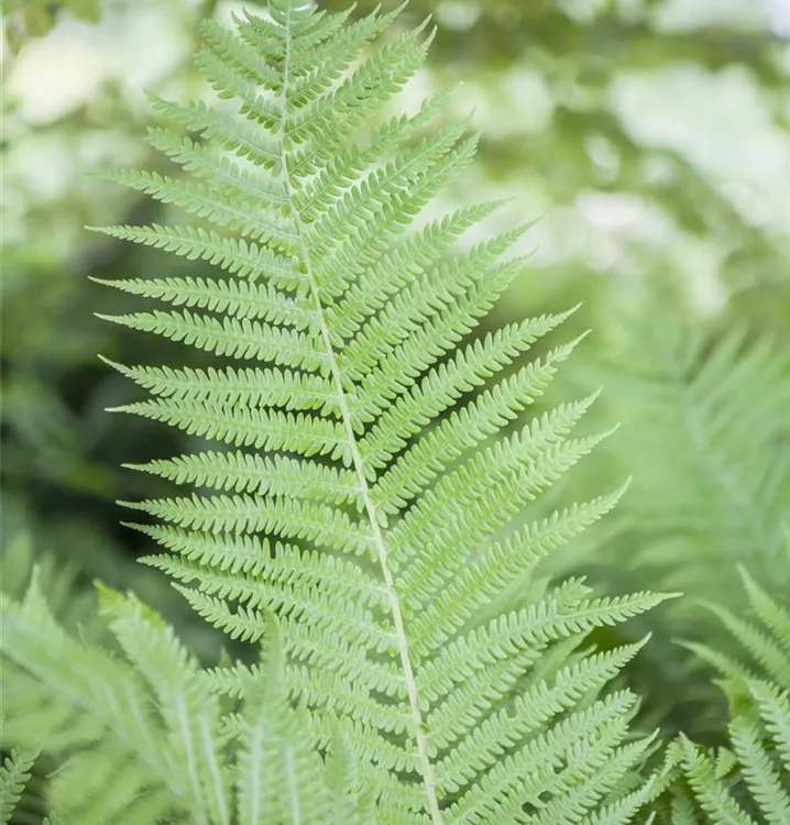 Der Wald-Frauenfarn (Athyrium filix-femina) ist mit seinen gefiederten, hellgrünen Blattwedeln ein dekoratives Gestaltungselement im Garten. An einem halbschattigen bis schattigen Standort mit einem möglichst durchlässigen, kalkfreien Boden fühlt er sich am wohlsten. Bei günstigen Bedingungen erreicht dieser winterharte Farn eine Höhe von ca. 80 cm und wird bis zu 70 cm breit.