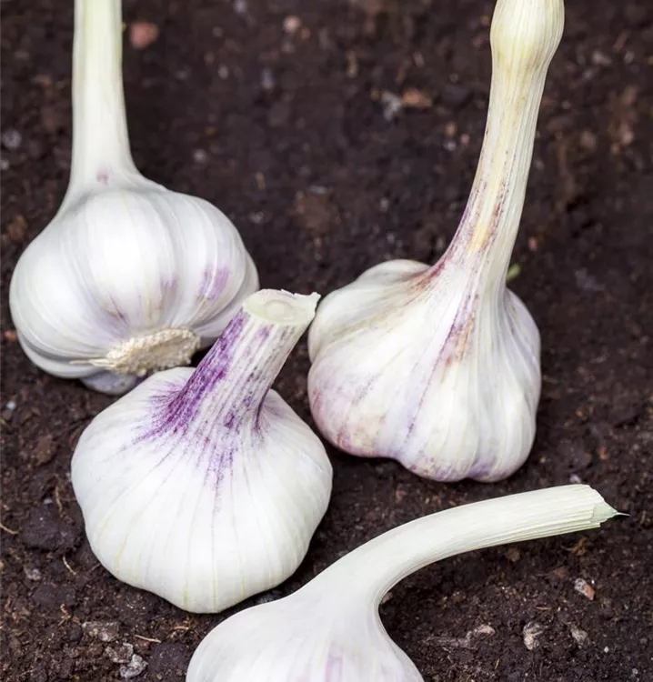 Der Echte Knoblauch (Allium sativum) bildet Zwiebeln, die pikant schmecken und bereits ab Juli geerntet werden können. Für das optimale Wachstum des Echten Knoblauchs werden ein sonniger Standort und durchlässiger, nährstoffreicher Boden benötigt.