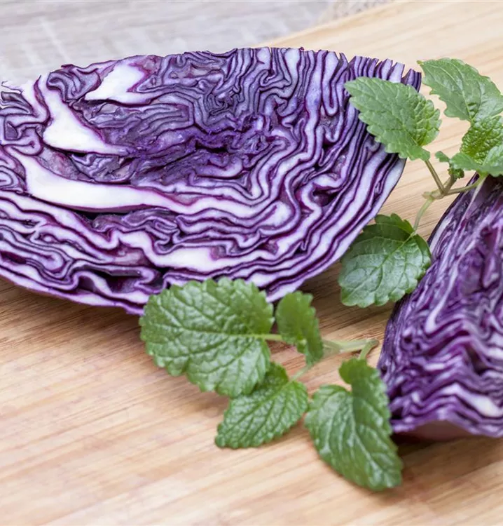 Der Rotkohl (Brassica oleracea var. capitata) ist eine aromatisch schmeckende Gemüsepflanze. Seine Blätter können geerntet werden, sobald er ca. 40 cm erreicht hat. Für das optimale Wachstum des Rotkohls werden ein sonniger Standort und durchlässiger, nährstoffreicher Boden benötigt.