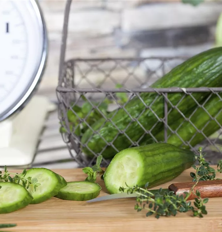 Die Gurke (Cucumis sativus) bildet Früchte, die aromatisch schmecken und bereits ab Juli geerntet werden können. Für das optimale Wachstum der Gurke werden ein sonniger Standort und durchlässiger, nährstoffreicher Boden benötigt.
