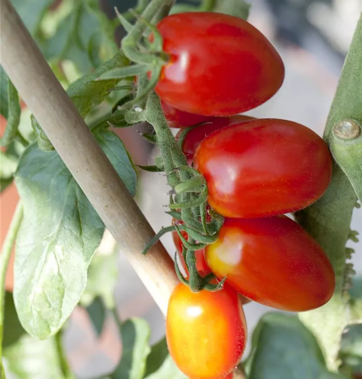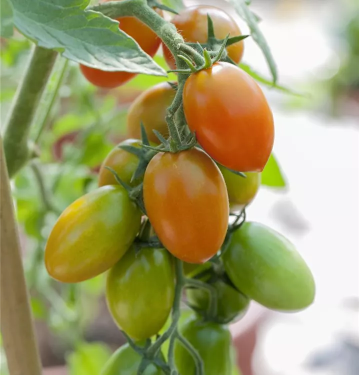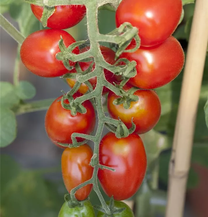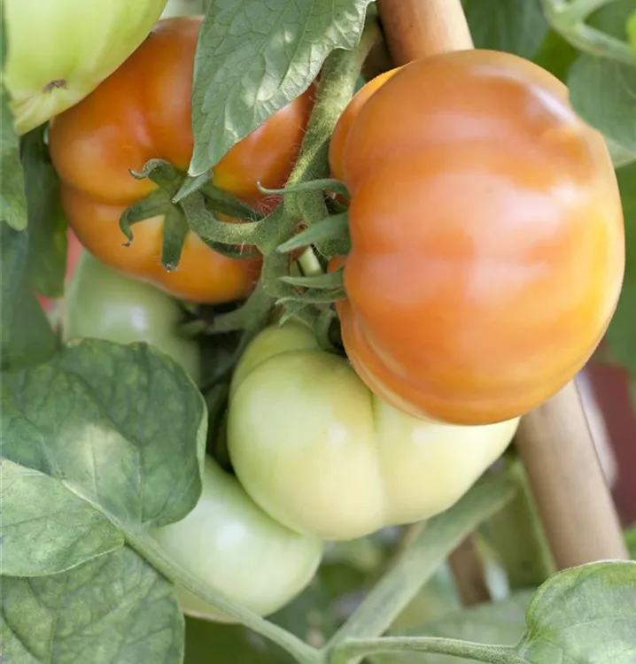Die Tomate (Solanum lycopersicum) bildet Früchte, die aromatisch schmecken und bereits ab Juli geerntet werden können. Für das optimale Wachstum der Tomate werden ein sonniger Standort und durchlässiger, nährstoffreicher Boden benötigt.