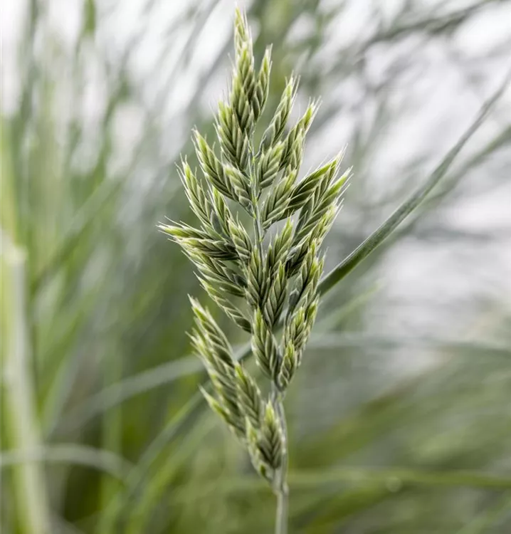 Die wintergrünen Blätter des Blau-Schwingels sind blau-grün.