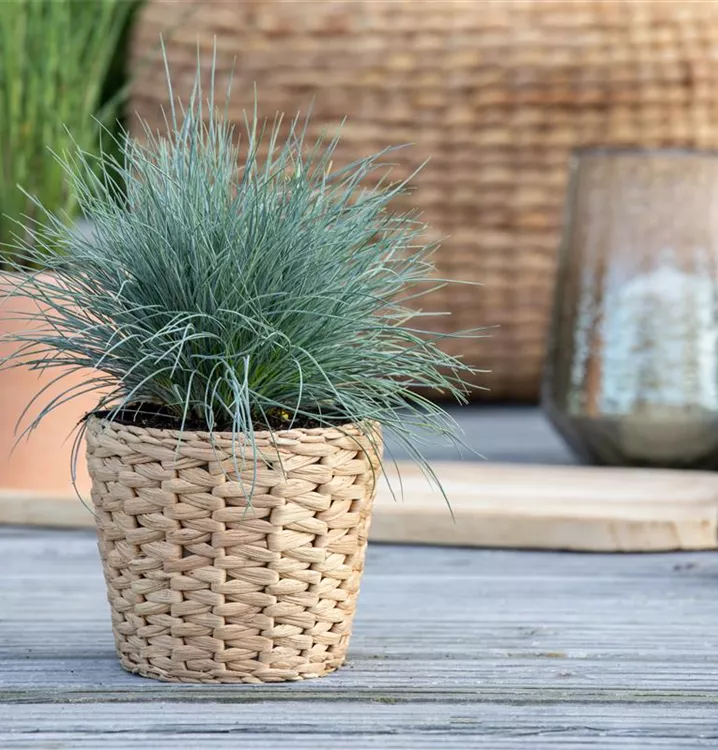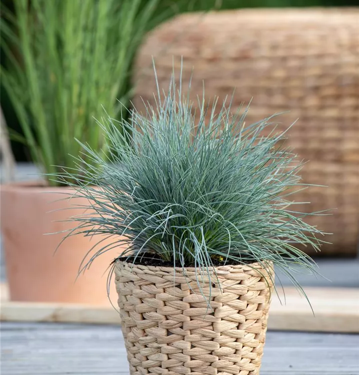 Der Blau-Schwingel (Festuca glauca) ist mit seiner blau-grünen Blattfärbung ein dekoratives Gestaltungselement im Garten, welches auch mit seinem polsterbildenden Wuchs hervorsticht. Die braunen Blütenwedel schmücken diese Gras ab Sommer. An einem sonnigen Standort mit einem möglichst durchlässigen, sandigen, lehmigen Boden fühlt er sich am wohlsten. Bei günstigen Bedingungen erreicht dieses winterharte Gras eine Höhe von ca. 30 cm und wird bis zu 60 cm breit.