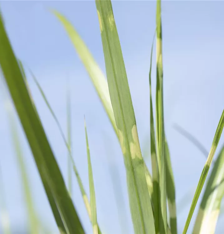 Hoher Blattschmuckwert. Die sommergrünen Blätter des Garten-Zebraschilfs 'Strictus' sind gelb-grün, lineal.