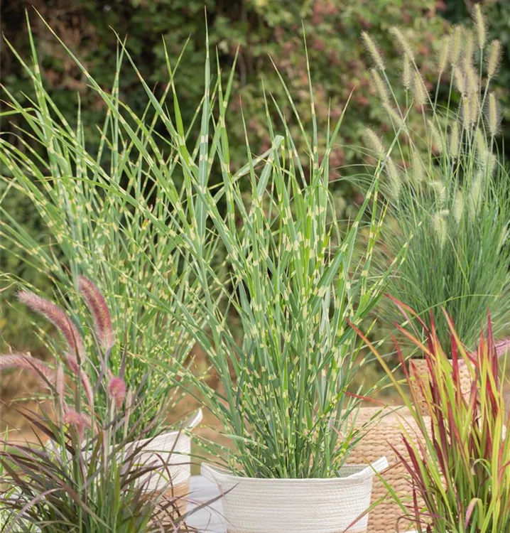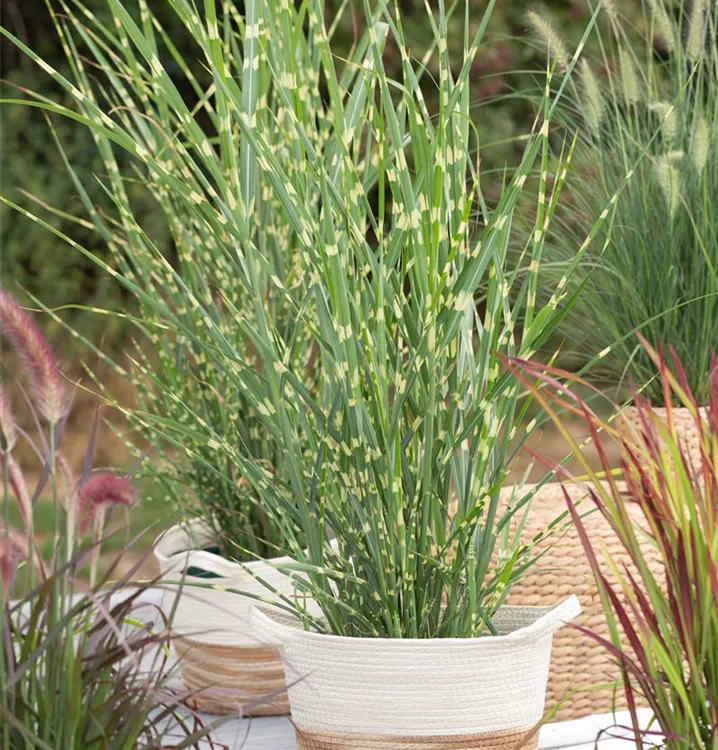 Das Garten-Zebraschilf 'Strictus' setzt schöne Akzente gemeinsam mit: