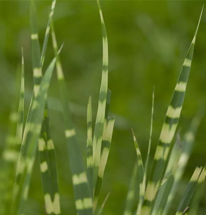 Das Garten-Chinaschilf 'Zebrinus' (Miscanthus sinensis) ist mit seiner gelb-grünen Blattfärbung ein dekoratives Gestaltungselement im Garten, welches sich an einem sonnigen bis halbschattigen Standort mit einem möglichst durchlässigen, humosen, nährstoffreichen Boden am wohlsten fühlt. Die braunen Blütenwedel schmücken die aufrecht und horstbildend wachsende Pflanze ab Herbst. Bei günstigen Bedingungen erreicht dieses winterharte Gras eine Höhe von ca. 1,6 m und wird bis zu 1,2 m breit.