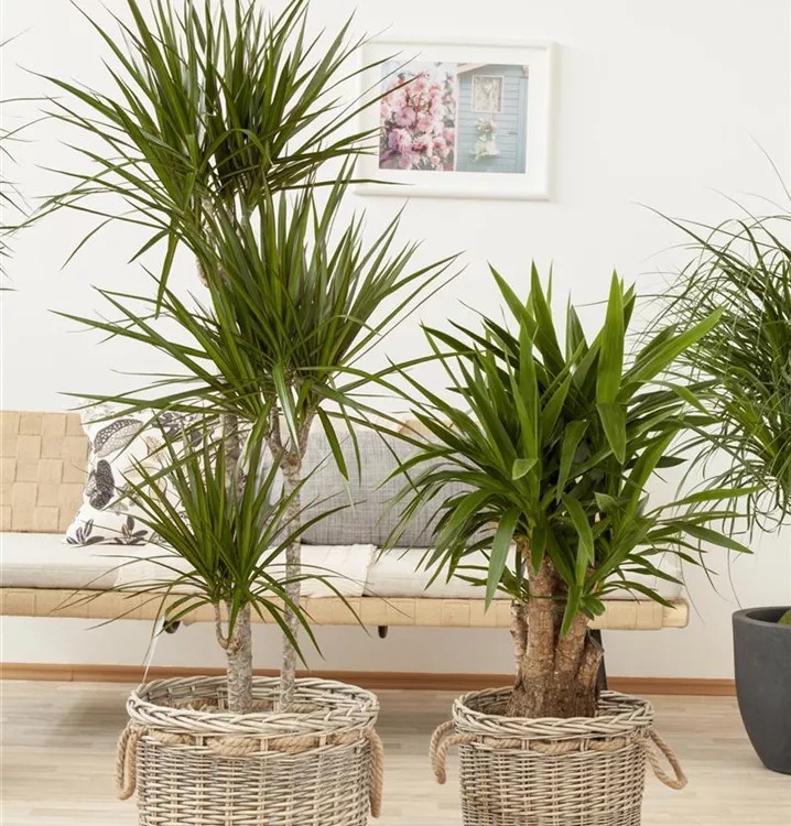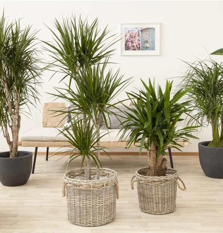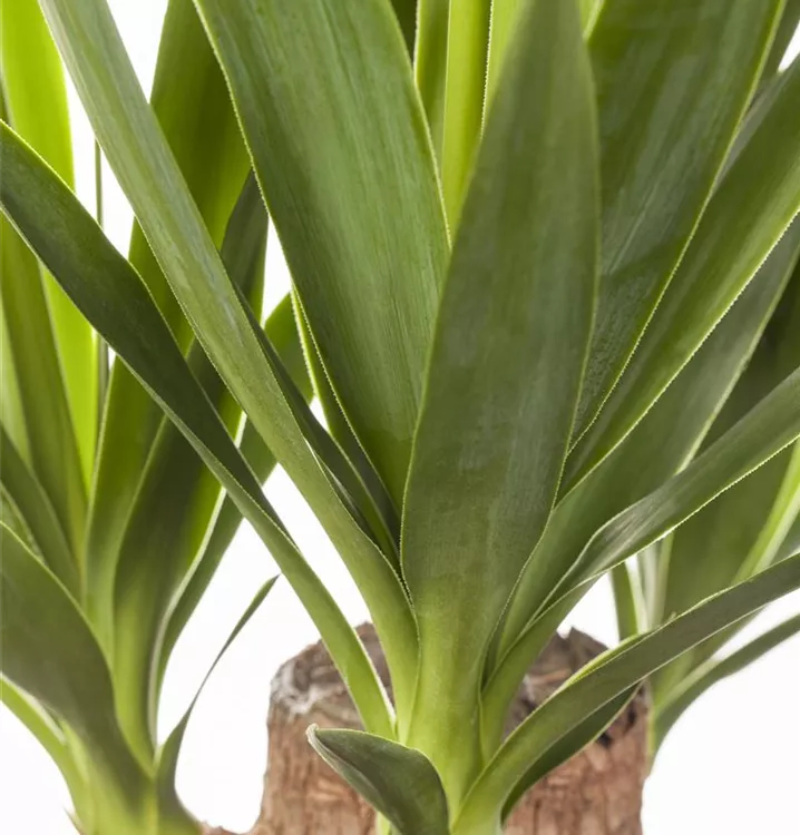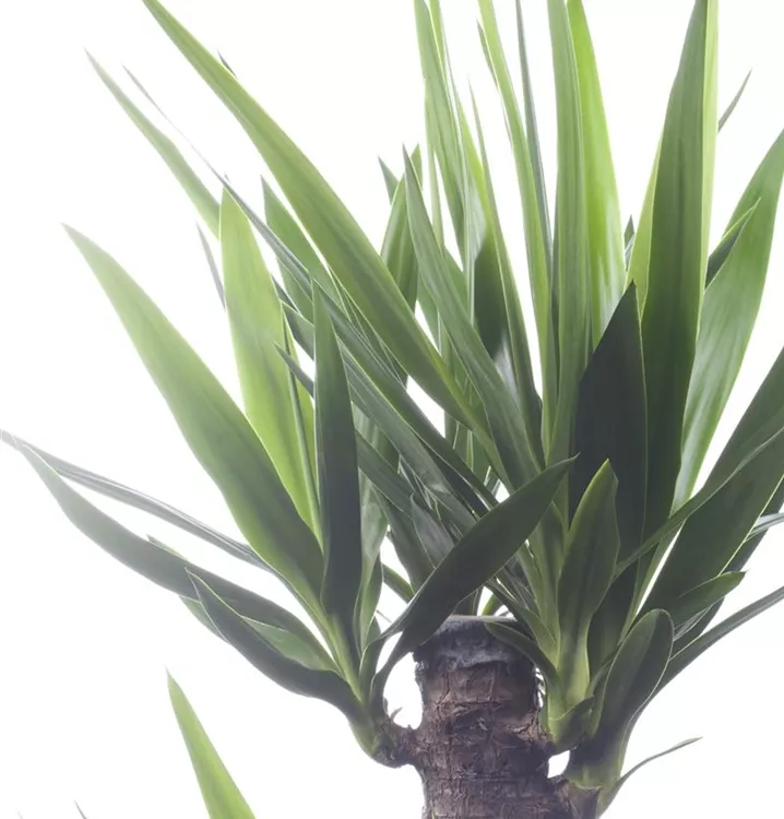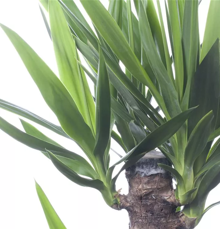 Die Riesen-Palmlilie (Yucca elephantipes) trägt dunkelgrüne, lineale, matte Blätter. Diese aufrechte Pflanze gedeiht am besten an einem sonnigen Standort.