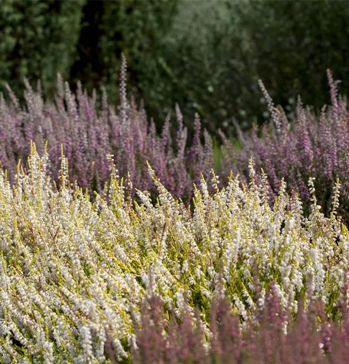 Die Besenheide (Calluna vulgaris) wird durch ihre unzähligen glockenförmigen Blüten in Rosa, Rot oder Weiß jeden Garten verschönern. Ab Juli ist es soweit und sie begeistert in Beeten, sowie in Kübeln auf Balkon oder Terrasse. Doch auch die nadelförmigen, dunkelgrünen Blätter sind ein schöner Anblick.