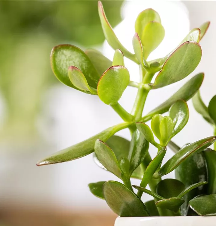 Die Blätter des Geldbaums sind dunkelgrün, dickfleischig.