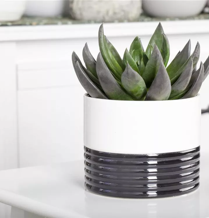 Die Echeverie (Echeveria) ist eine Pflanze mit mittelgrünen, grau-grünen, dickfleischigen Blättern. Die glockenförmigen Blüten erscheinen von Februar bis März. Diese rosettenartige Pflanze gedeiht am besten an einem sonnigen Standort.