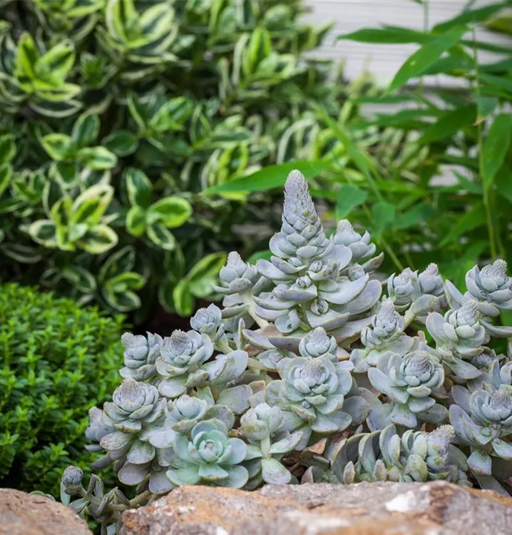 Die Sternwurz (Orostachys iwarenge) ist eine Pflanze mit blau-grünen Blättern. Diese rosettenartige Pflanze gedeiht am besten an einem sonnigen bis halbschattigen Standort.