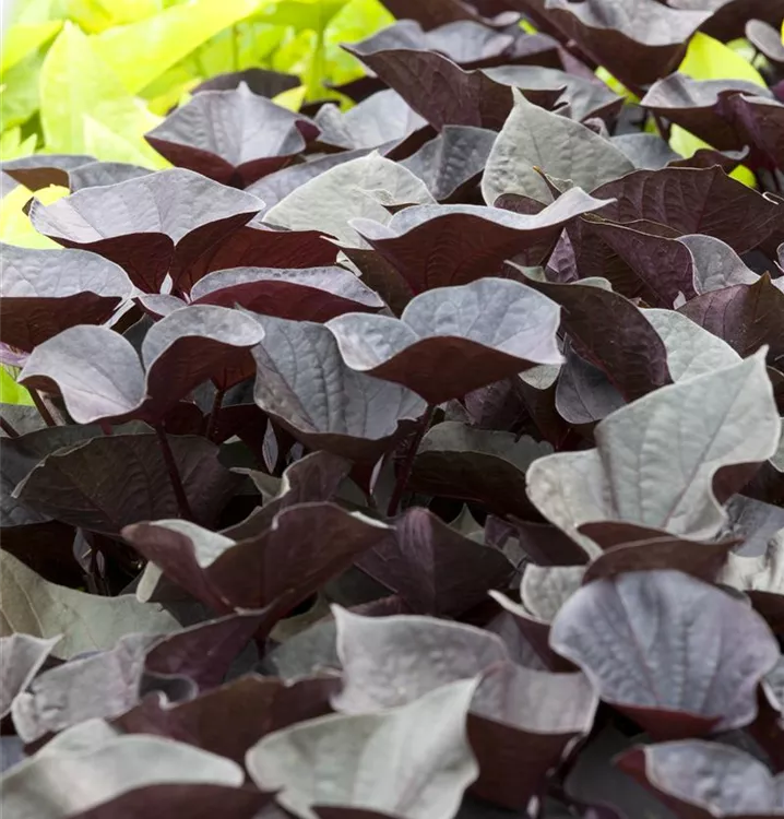 Süßkartoffel ist ein kriechend wachsende Kletterpflanze, welche eine Höhe von 1,5 - 2 m und eine Breite von 0,5 - 1 m erreichen kann.