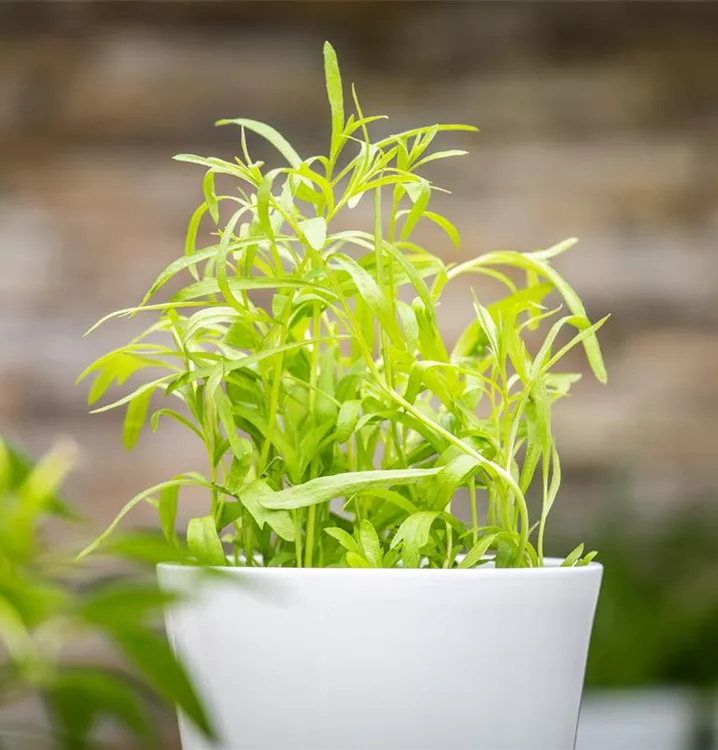 Der Estragon (Artemisia dracunculus) ist eine Kräuterpflanze mit einem würzigen Geschmack. Seine mittelgrünen Blätter sind gefingert. Für das optimale Wachstum des Estragons werden ein sonniger Standort und durchlässiger, nährstoffreicher Boden benötigt.