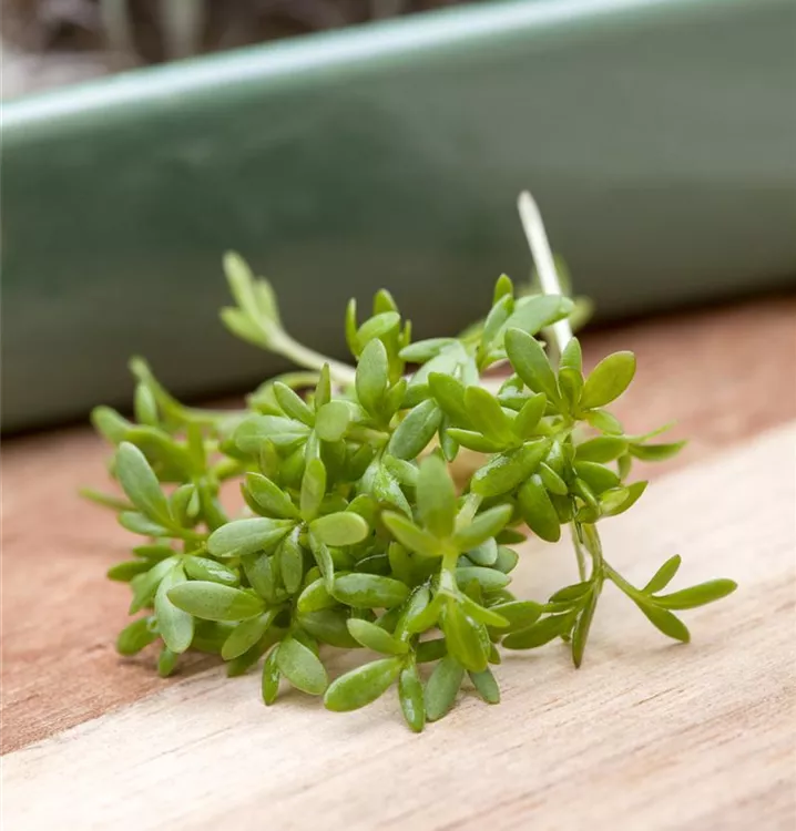 Die Gartenkresse (Lepidium sativum) ist eine Kräuterpflanze mit einem nussigen, scharfen Geschmack. Ihre mittelgrünen Blätter sind lanzettlich und gebuchtet. Für das optimale Wachstum der Gartenkresse werden ein sonniger Standort und durchlässiger, nährstoffreicher Boden benötigt.